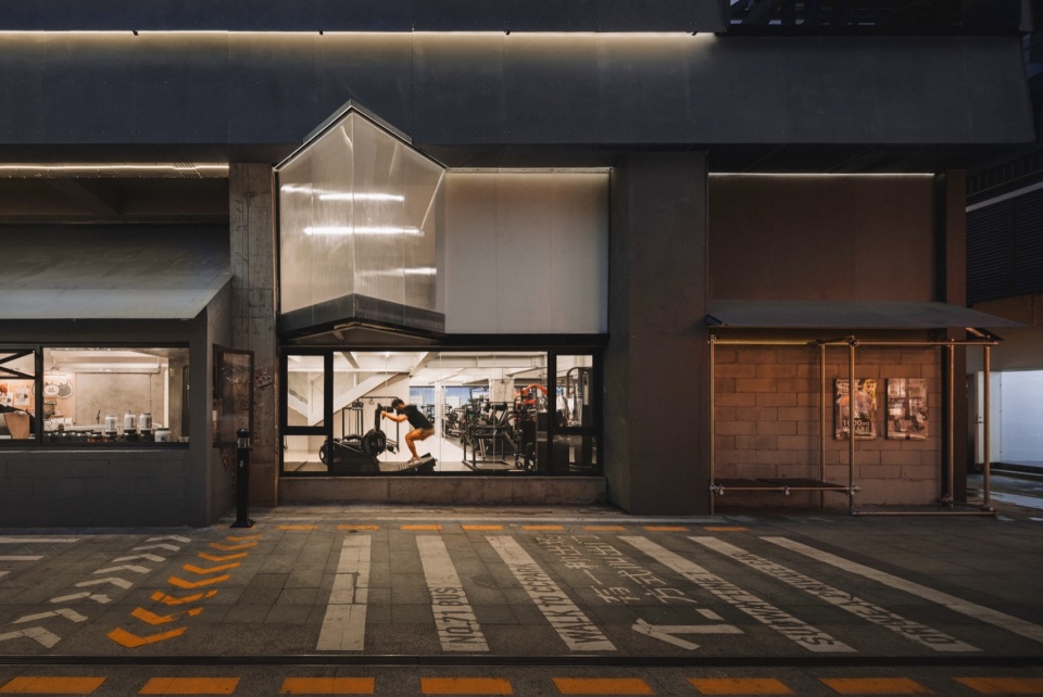 The restless facade, the lifted canopy, the rotated photo studio, and the scaffolding running throughout symbolize the growth of the architecture and space. This “perpetually under-construction” posture echoes the core spirit of constant growth among fitness enthusiasts.