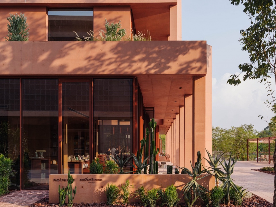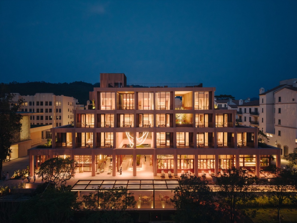 The author’s room Hotel project is located in Aranya Jiulong Lake, Guangzhou, conceived as a hybrid cultural space developed for the cultural brand naive IMAGINIST. The project integrates a bookstore, café and light dining, and accommodation into a single, cohesive destination. Jiulong Lake is a one-hour drive from downtown Guangzhou and is surrounded by 1.67 km² of pristine mountain forest and lake landscapes. The building is situated on the eastern riverside of the town, backed by expansive views of mountains and the lake, while remaining adjacent to the community art museum and canteen. Within this unique context—where urban vitality and natural serenity coexist—the design seeks to weave local culture into the spaGal narrative, creating a cultural environment that is warm and emotive.