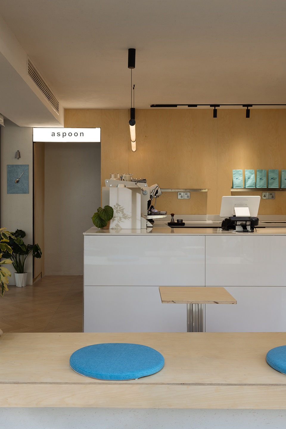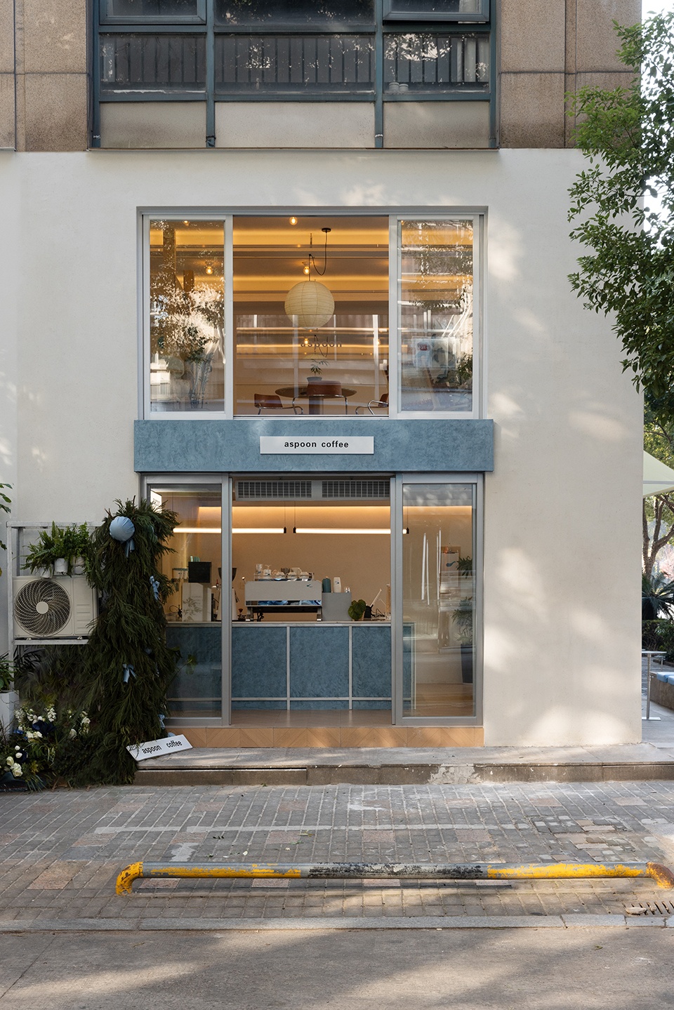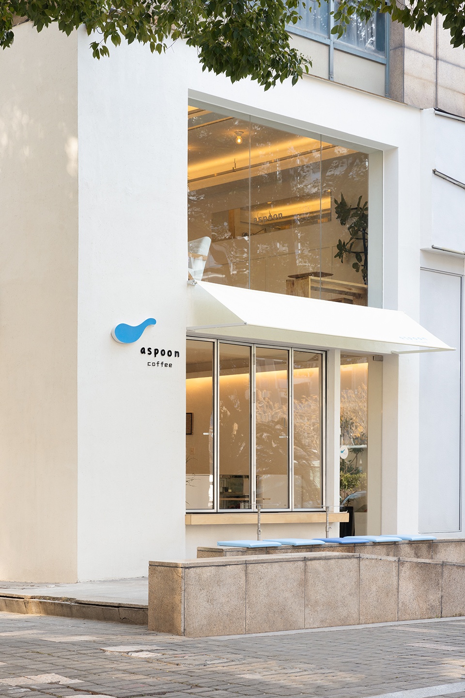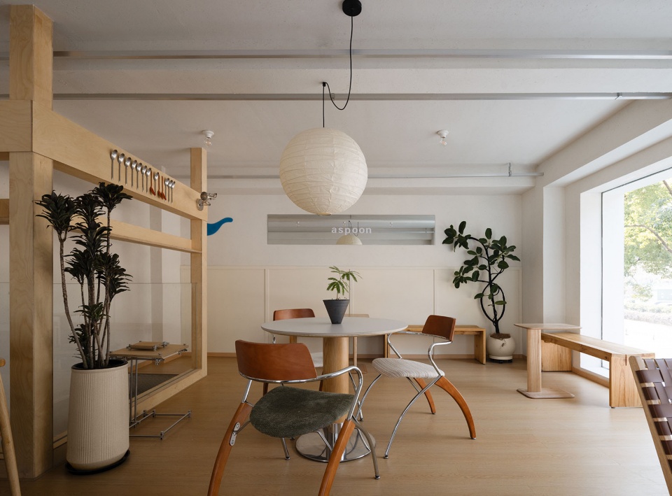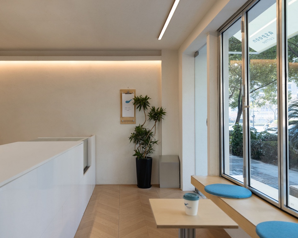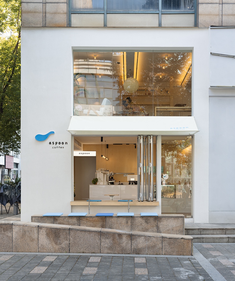 Aspoon Coffee is located at a street corner in Taizhou, Zhejiang, where tree-lined sidewalks form a continuous urban frontage. The design begins with the inherent character of the corner. As a point of intersection within the neighborhood, the site naturally embodies openness, visibility, and public engagement. The café is therefore conceived as a spatial node within the daily flow of the district, integrating itself into the street in an open and approachable manner.