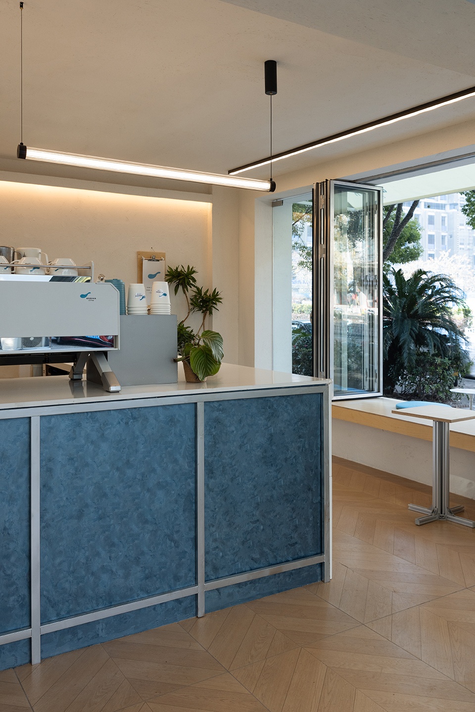 Within a spatial framework defined largely by transparency, color becomes a subtle means of articulation. A touch of blue is introduced as a visual identifier within the space, guiding attention and establishing a restrained yet recognizable presence in the urban environment. Through clear functional organization and a restrained design language, the project establishes a stable and everyday relationship between architecture and its surroundings, allowing the space to naturally integrate into the everyday context of the neighborhood.