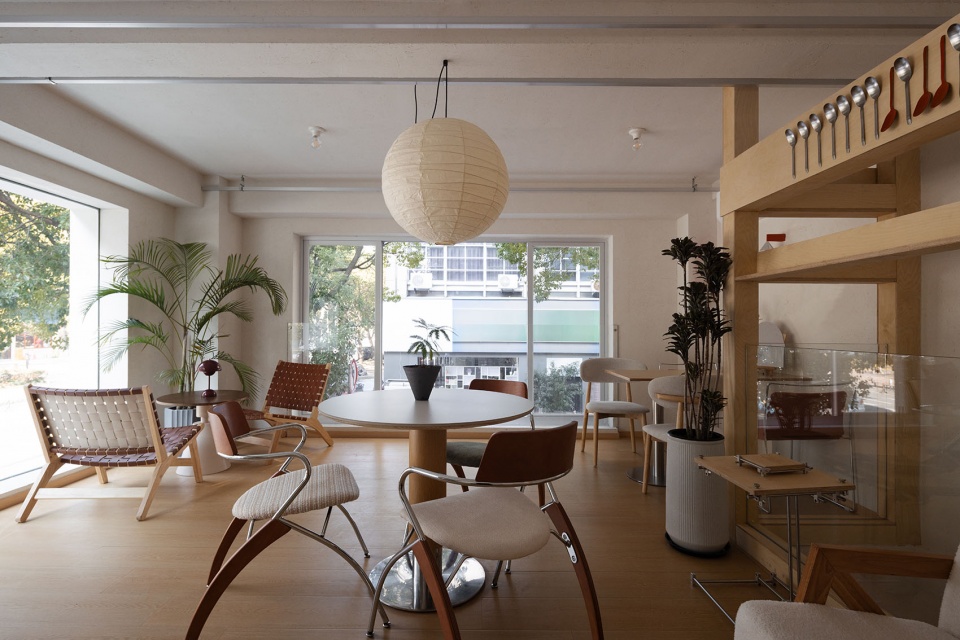 一勺咖啡位于浙江台州一处街区转角,沿街树木形成连续的城市界面。空间从转角所具备的公共属性出发,将其理解为街区流动中的一个空间节点,使场所以一种开放的状态融入街区的日常环境之中。
