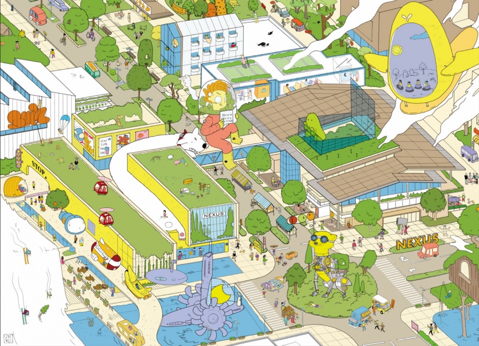 ▼嘉定未来城市卡通画,Jiading future city cartoon illustration
