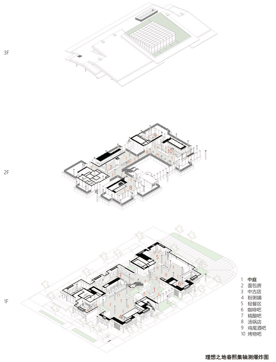 ▼春熙集爆炸图,exploded axonometric of CHUNXI Marketplace