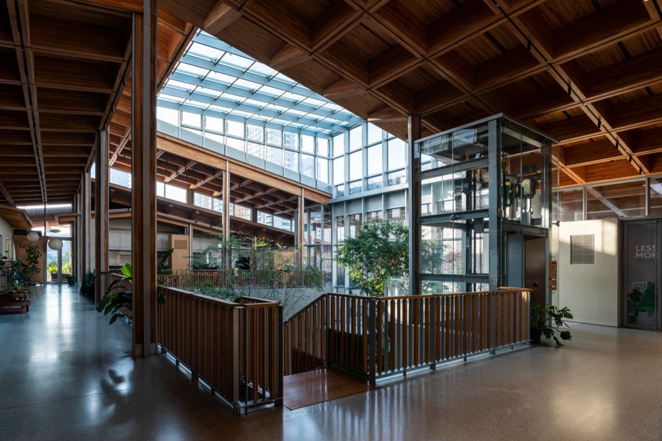 ▼钢木结构组合作为主体结构,steel–wood structural combination as the main structure