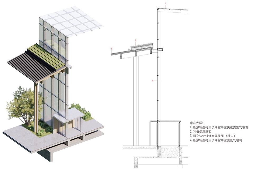 ▼中庭剖面详图,detail section of the courtyard