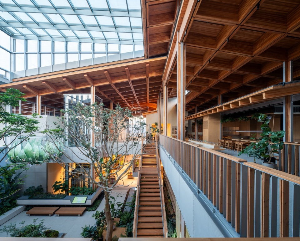▼一层中庭的立体绿化,three-dimensional greenery in the ground-floor courtyard