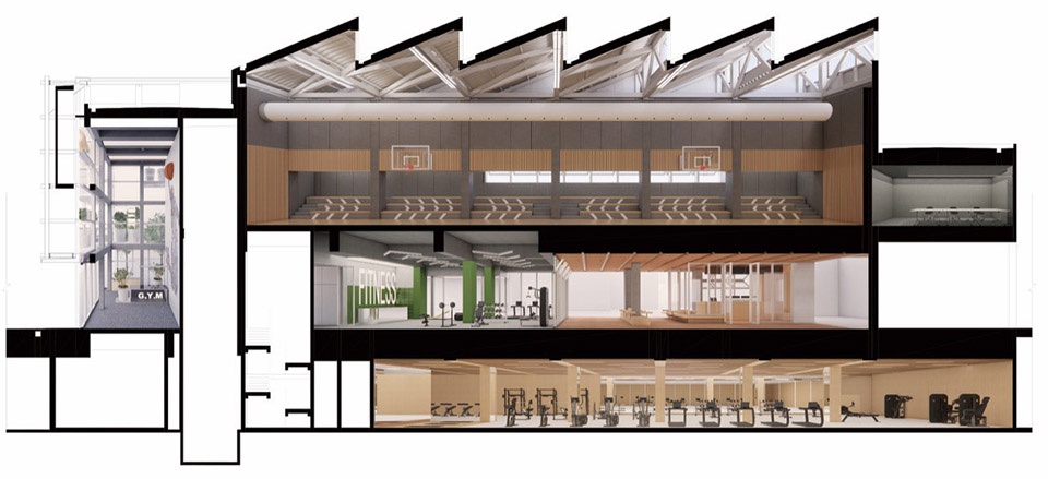 GULANG Gymnasium: Above Ground 2,290 m²,Basement 1,300 m²