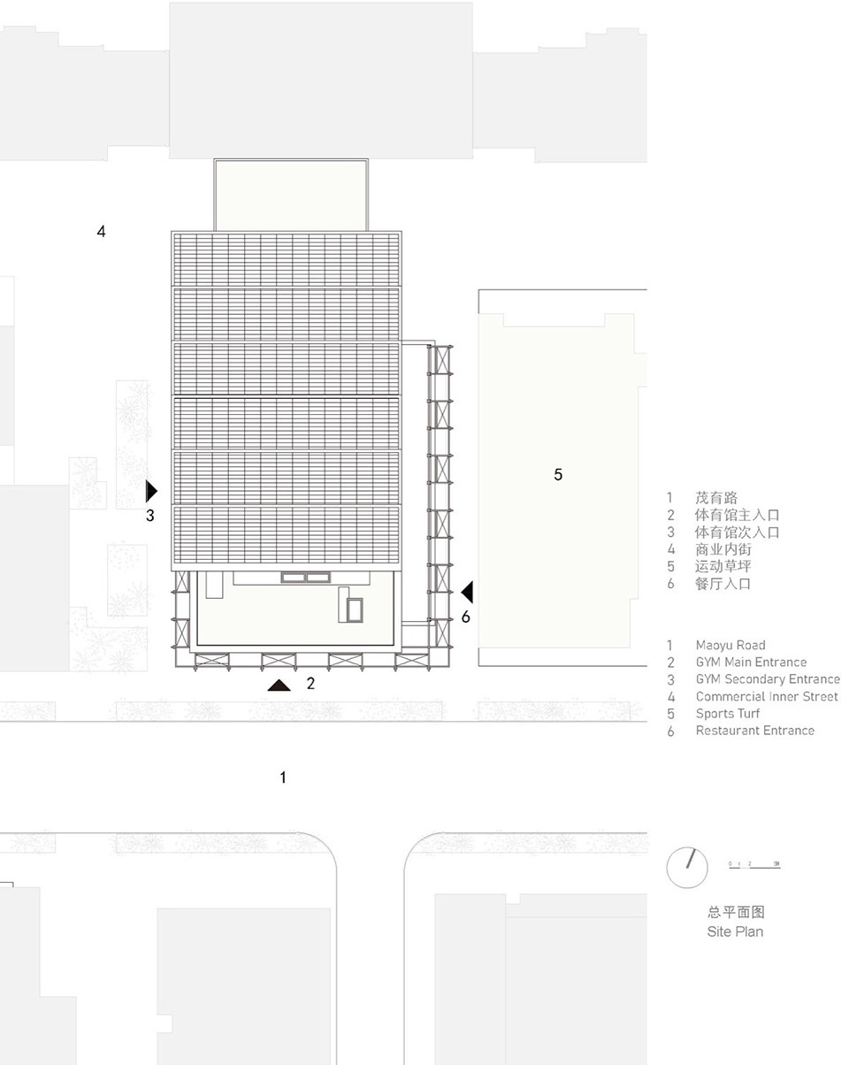 ▼球类馆实体体量的隐藏,concealment of the solid volume of the ball sports hall