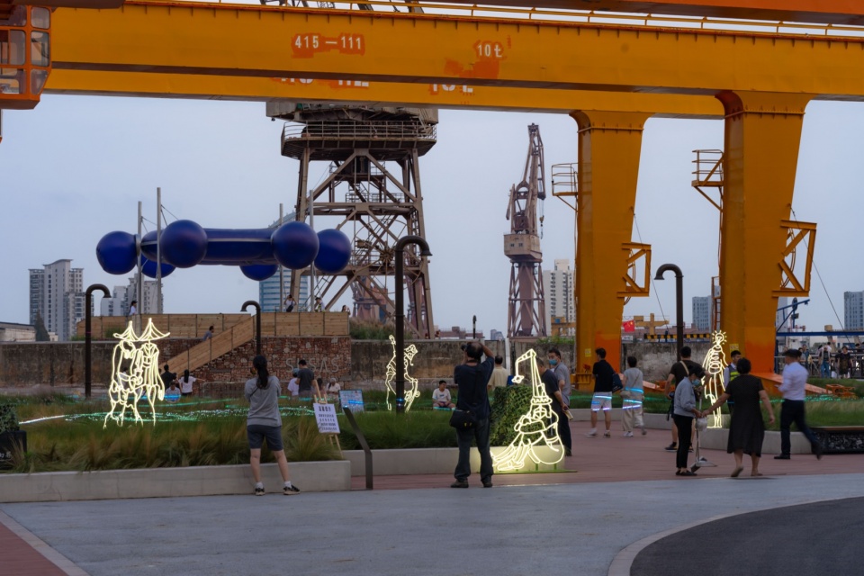 2.将防汛墙转化为展示墙:以防汛墙为背景,它需要在白天和黑夜具有某种视觉上的标志——类比于“灯塔”。