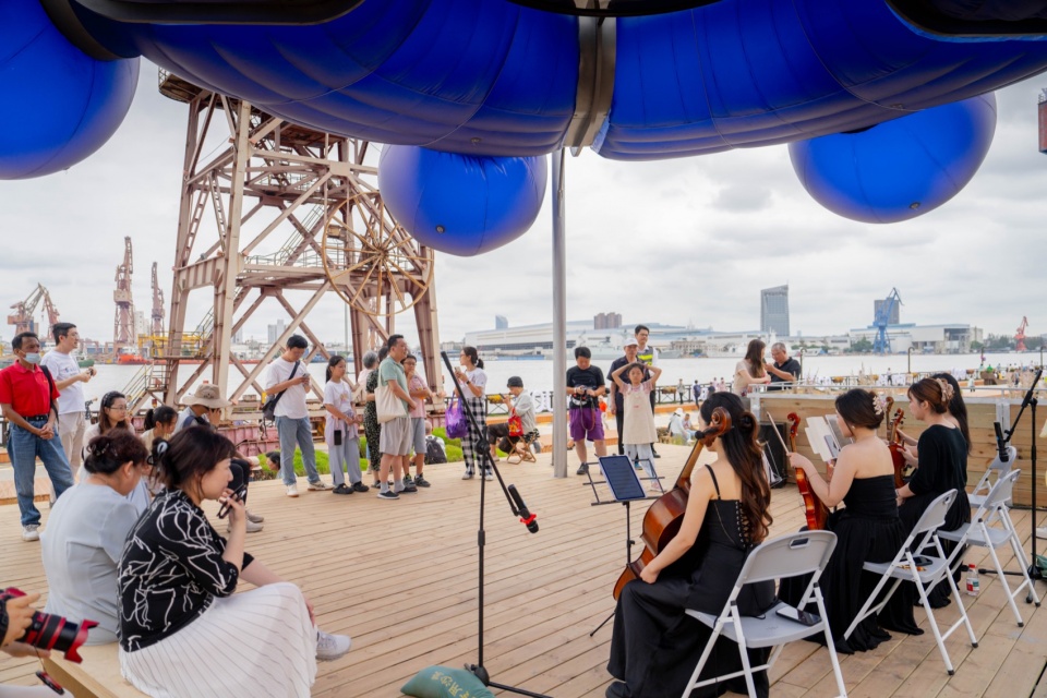 ▼望江台上举办的弦乐表演,The string performance held on the wangjiang terrace