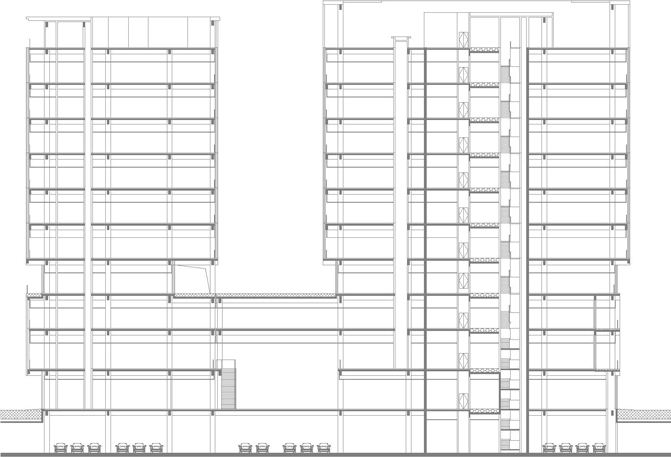“药立方”产业综合体则为生物医药研发提供量身定制的解决方案。设计将研发实验室垂直叠合,突破传统平面布局的空间限制,实验室单元可根据PCR检测、细胞培养、洁净区操作等不同工艺需求灵活组合。针对产业特殊性,空间参数进行精准匹配——层高4.5-5.1米适配各类实验设备安装,400-800kg/㎡的承重标准满足精密仪器放置需求,标准层专属管井、废液收集及废气处理系统的配置,更从根源保障研发环境的安全合规,实现产业功能与空间设计的无缝衔接。