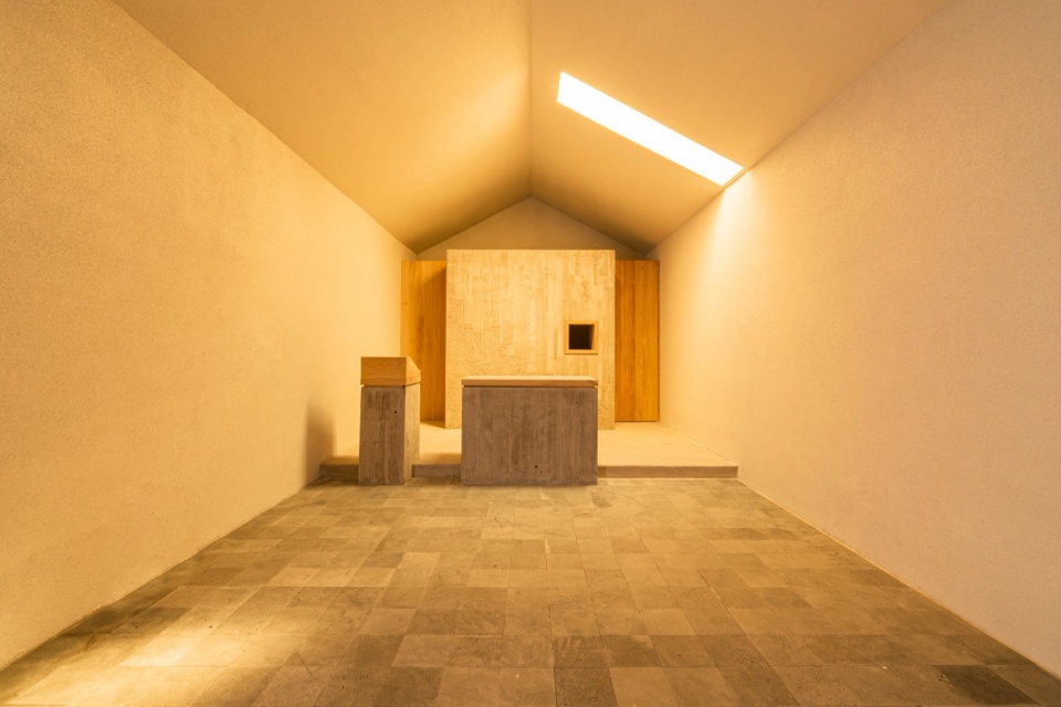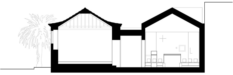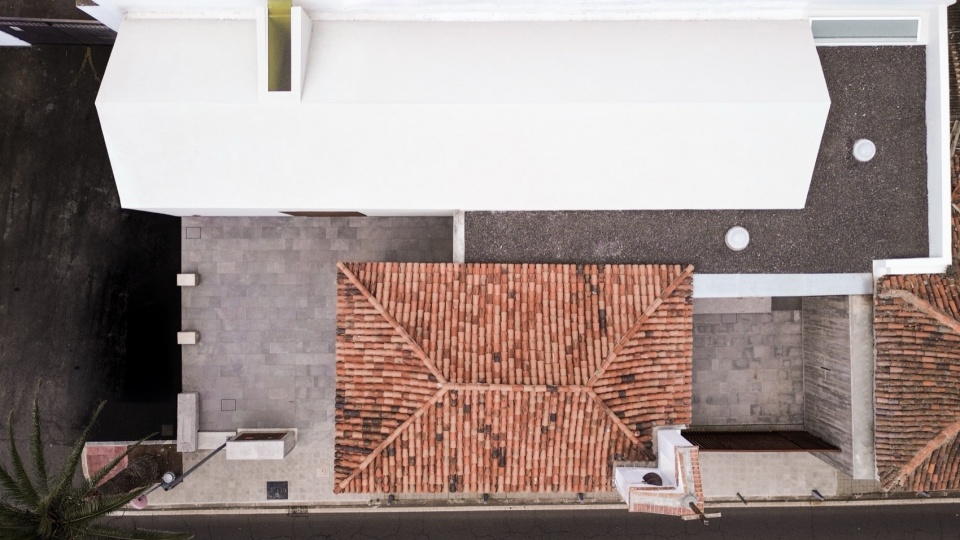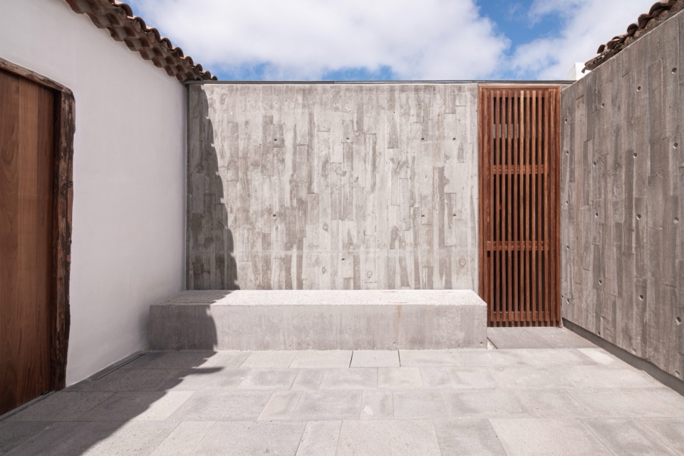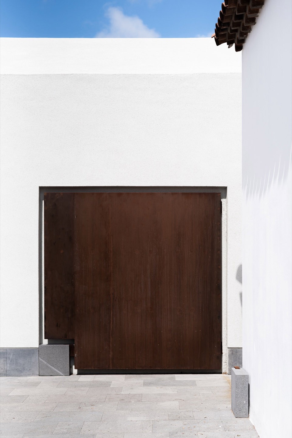 原有的小教堂建于18世纪初,沿旧日通往坎德拉里亚的道路而设,其建筑形态质朴而克制,与农业生产周期以及对当地居民和旅人的精神关怀密切相关。平面呈矩形,屋顶采用典型的穆德哈尔式 par y nudillo 木构体系,是加那利群岛乡村宗教建筑的重要范例。此次介入对这一历史体量进行了完整修复,遵循最小干预原则,以传统工艺重现木质藻井屋顶,同时清除20世纪以来扭曲其类型学解读的附加构筑,包括曾被封闭的入口前庭。