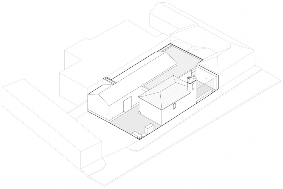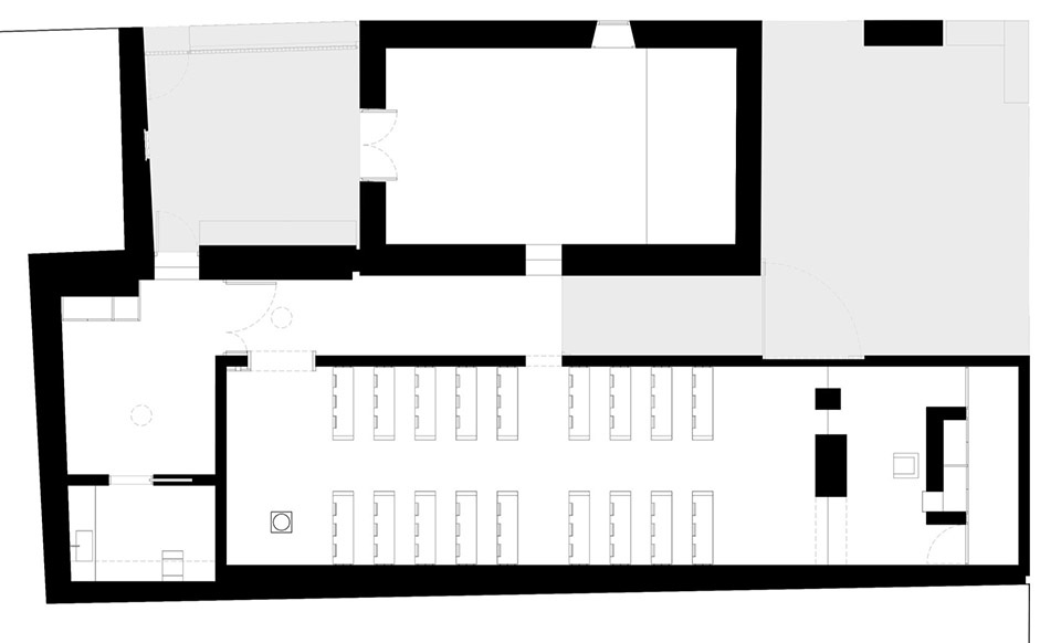 The extension is conceived as an autonomous body, clearly differentiated from the historic building. Between the two, a deambulatory is introduced as a space of transition and respect, allowing old and new to coexist without confusion. This intermediate strip is not only functional, but also acts as a temporal threshold, underlining the specific condition of each architectural layer and avoiding any formal mimicry.