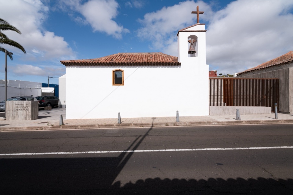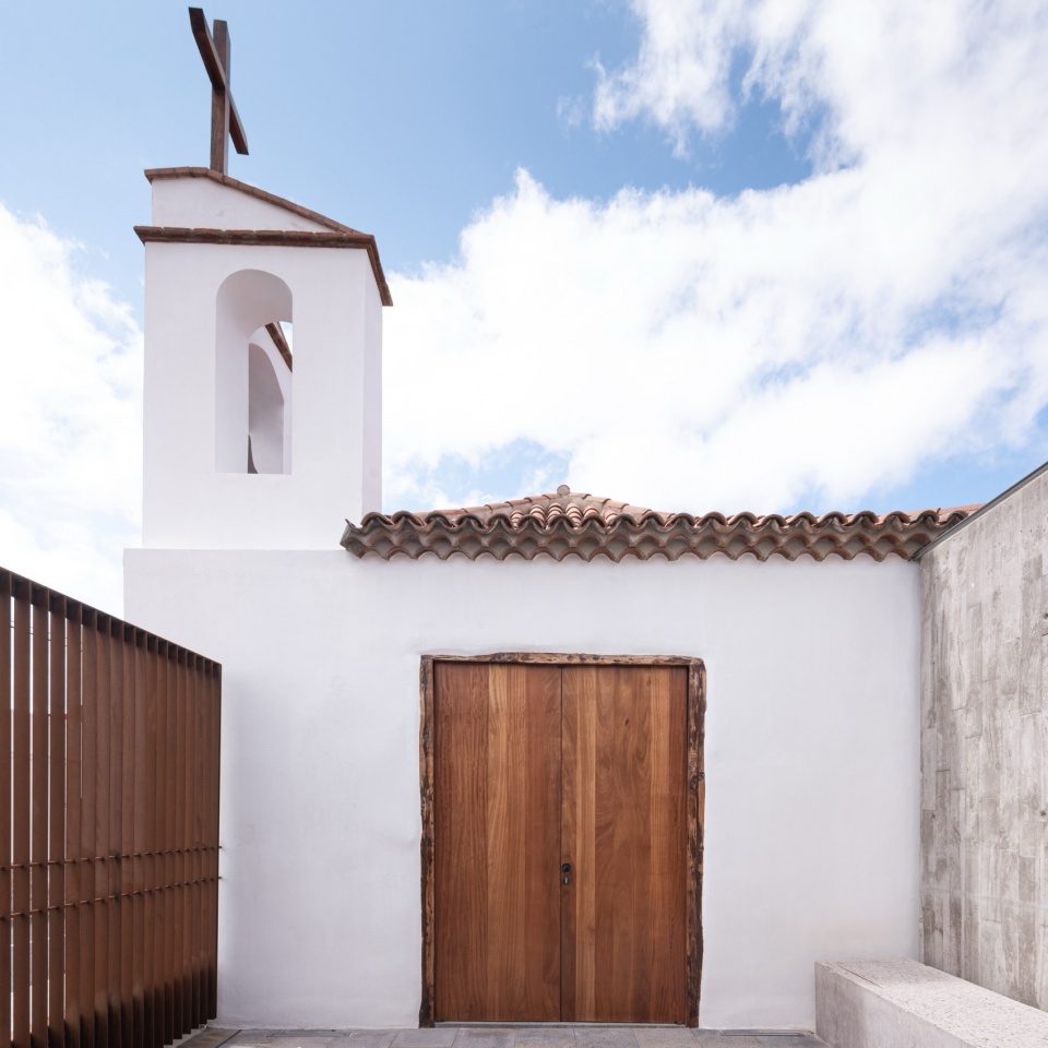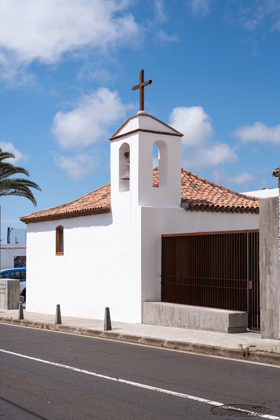 The original hermitage, built at the beginning of the 18th century along the former Candelaria road, embodies an austere and functional architecture closely linked to agricultural cycles and to the spiritual care of local inhabitants and travellers. Rectangular in plan and covered by a Mudéjar timber roof structure of par y nudillo, it represents a significant example of rural religious architecture in the Canary Islands. The intervention has fully restored this historic volume, recovering its timber coffered ceiling using traditional techniques and criteria of minimal intervention, while removing 20th-century additions that had distorted its typological reading, including the enclosure of the former entrance courtyard.