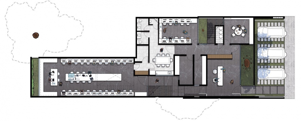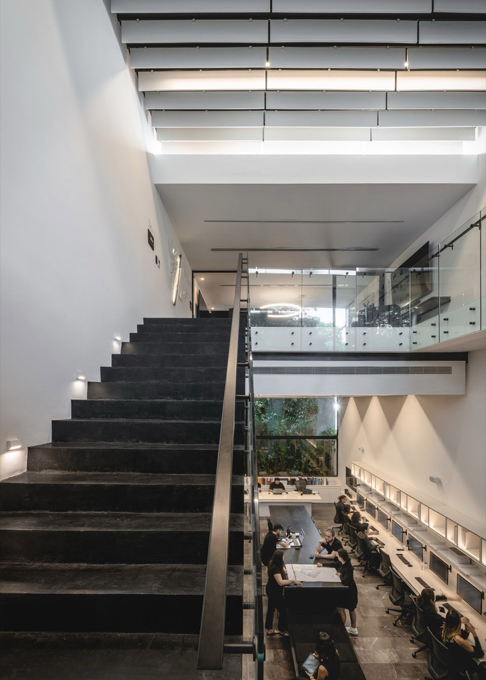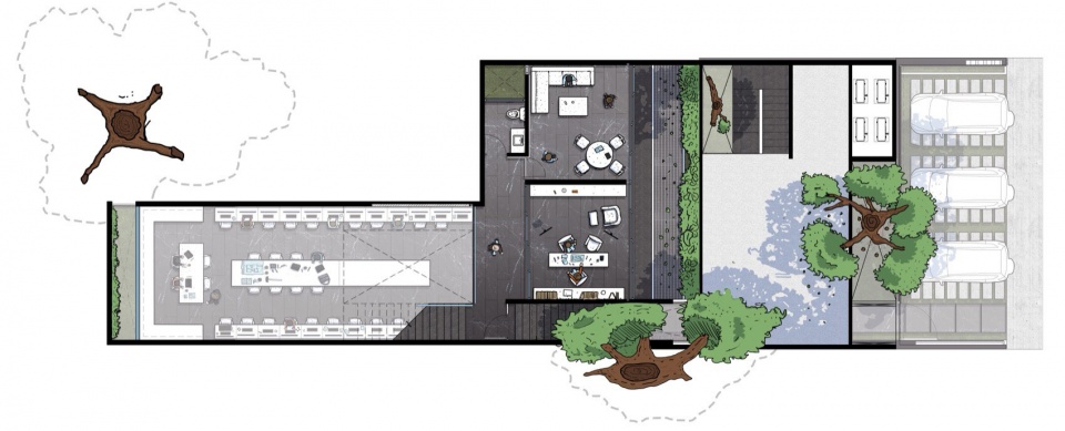 建筑的空间叙事如同一出三幕剧展开。第一幕引人探索,空间层层展开,每一次行进都暗藏惊喜;第二幕则献给自然,自踏入建筑的那一刻起,绿意便如影随形,陪伴访客直至最深处;第三幕超越了传统办公空间的定义,它被塑造成一个促成相遇、激发灵感与协作的场所,是团队精神的空间延伸,也让到访者感受到一个可以共同创造的环境。