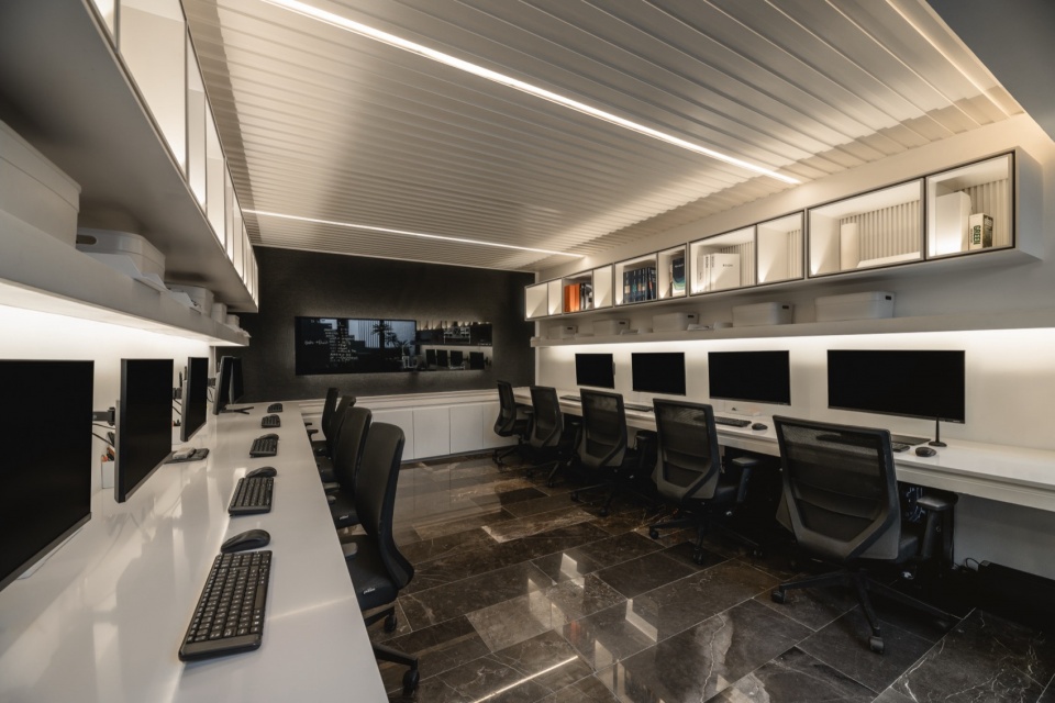 The workshop is undoubtedly The Asylum’s soul. Its high ceilings and open design reflect Arkham’s essence: a collaborative, dynamic space, always evolving, and showcasing the true muscle behind Arkham – its people. From here, one can see how every space in the building is interconnected, from private rooms with panoramic views to corners designed for relaxation and leisure.