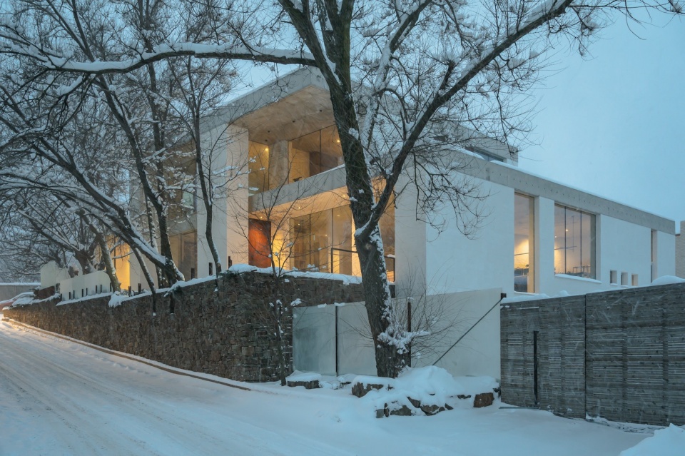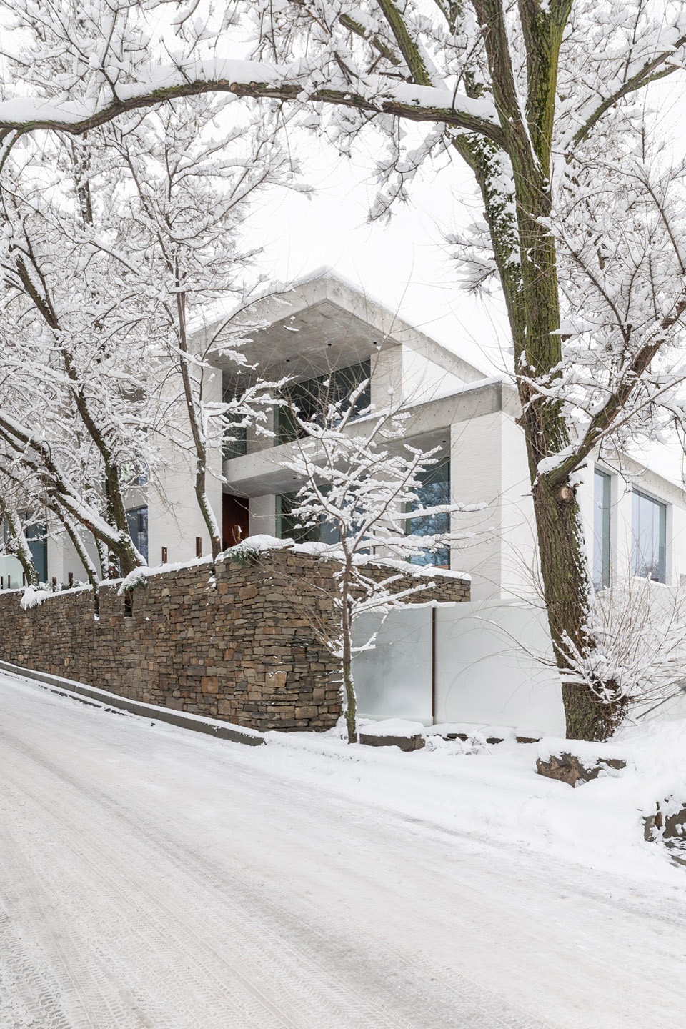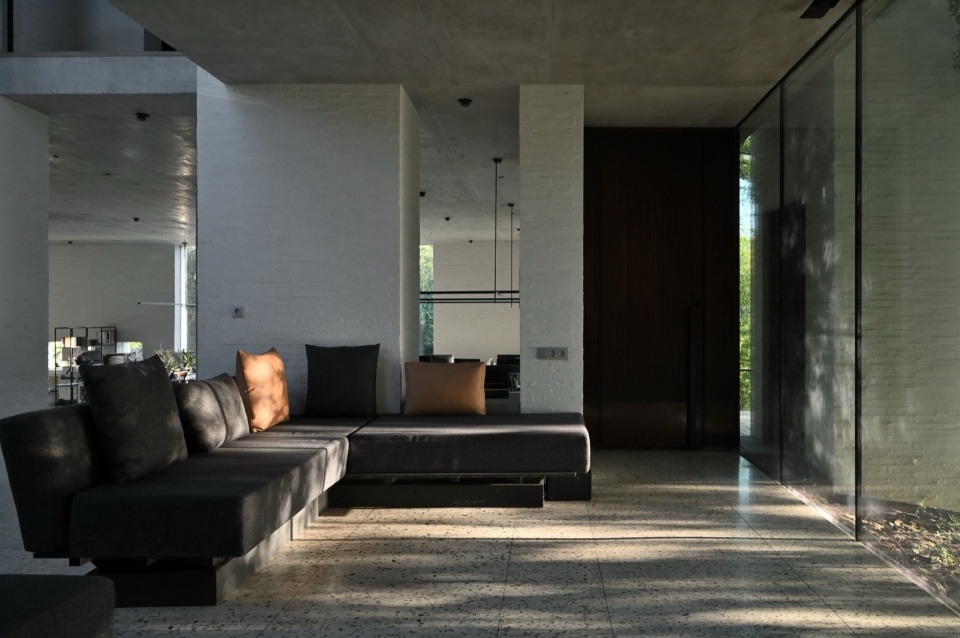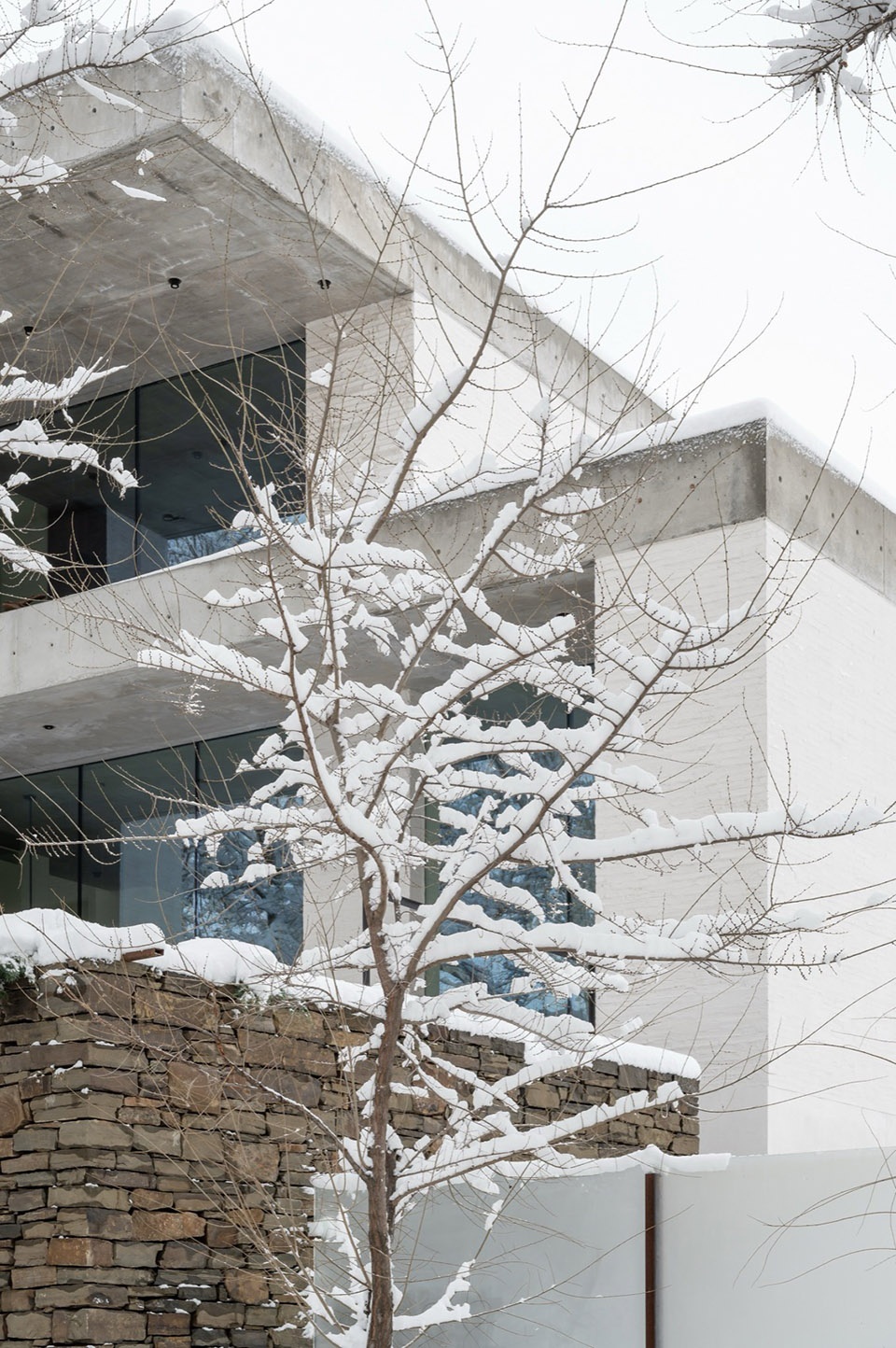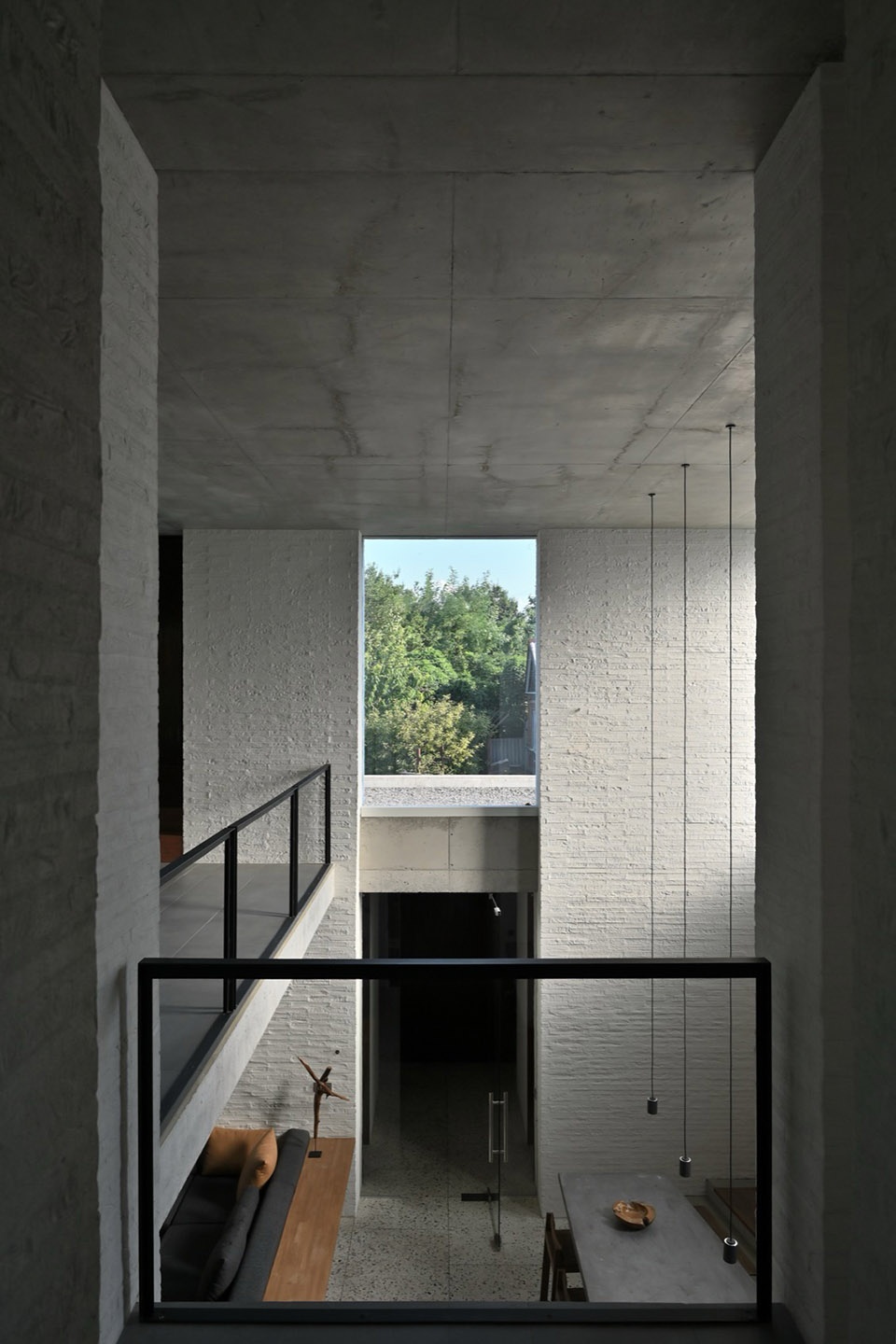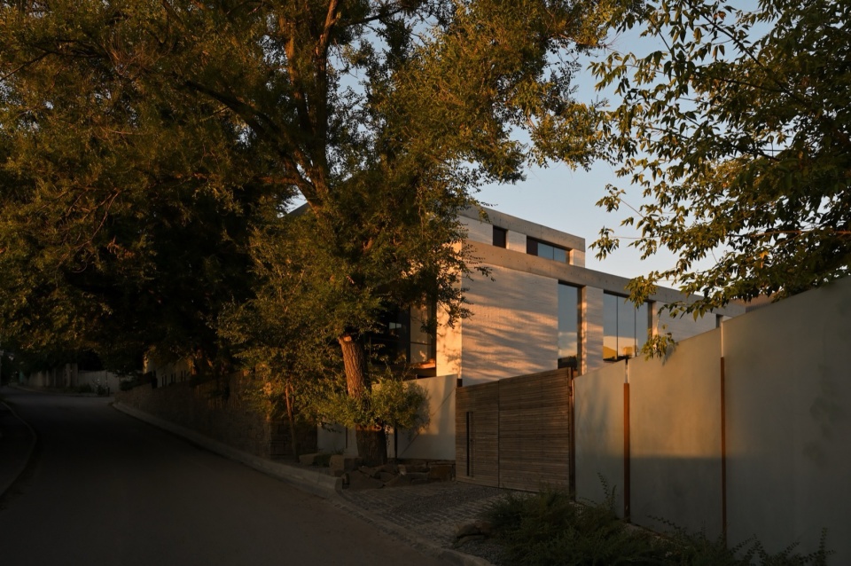 次要功能空间则布置于地面层。基地周边生长着多株成熟乔木,在设计过程中我们尽量予以保留。这些树木为整体构图注入了一种“被时间使用过”的气质,形成浓密的绿化层,同时遮挡了部分来自道路的视线。