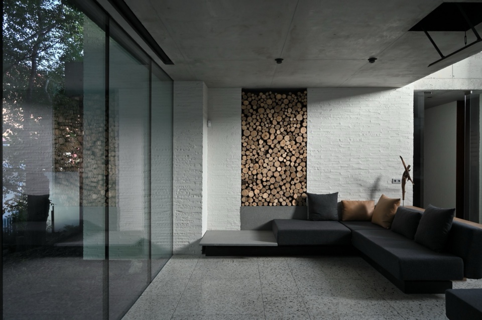 The second areas were carried out on the ground floor. Around the house grow the adult trees and during projection, we tried to save them. They give to the composition lived-in atmosphere, form the lush greenery, which hides the part of the building from the road.