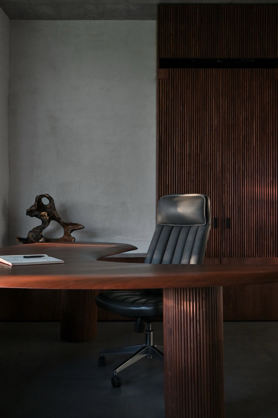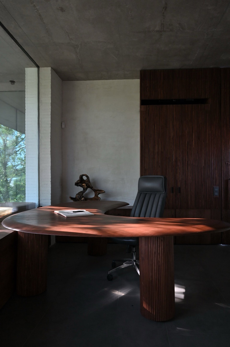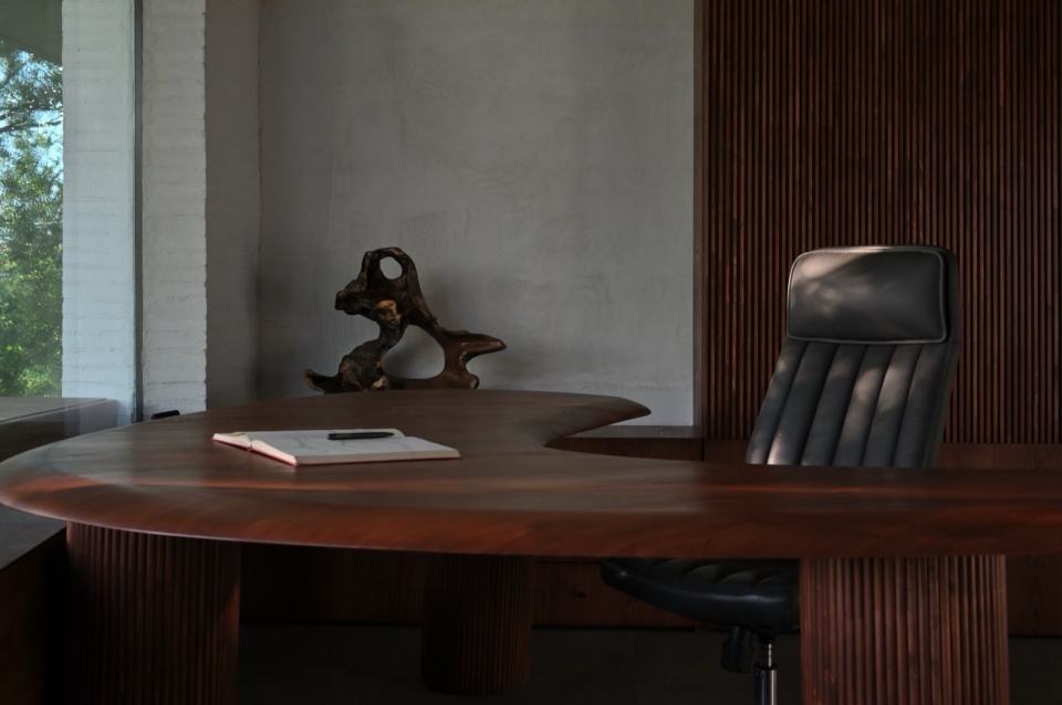 办公建筑的建筑语言克制而庄重,呈现出一种冷静、坚实的气质,传达出可靠、耐久与对外部干扰的隔绝感。这种状态,恰如全身心投入创作时的心理感受。我们以尊重材料为前提进行设计,并有意识地限制材质与肌理的使用种类。