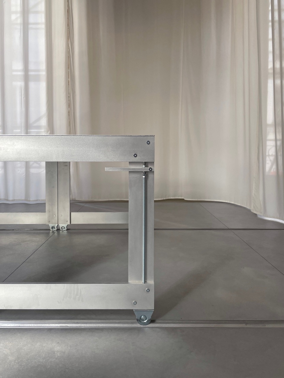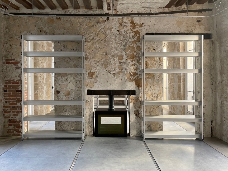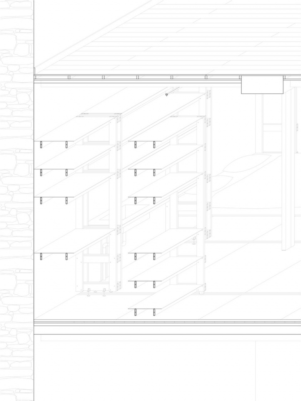 以铝制“泥瓦匠直尺”为构件逻辑制作的家具,组织并界定了新的空间。