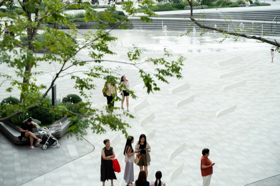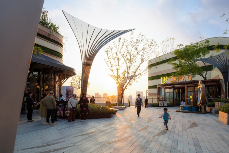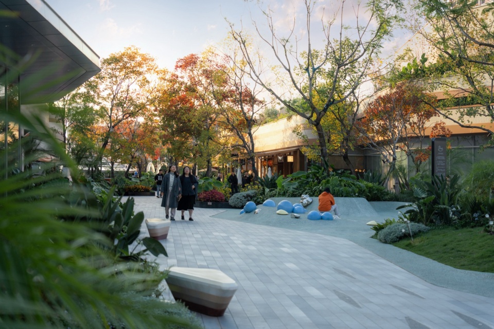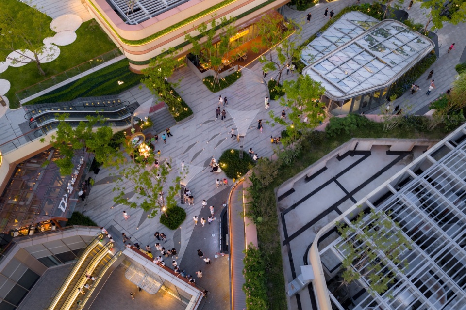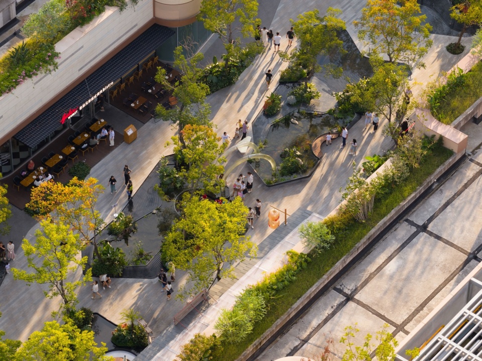 ▼商业体景观为周边社区居民提供了一个安全、舒适、生机且功能复合的全天候公共空间,