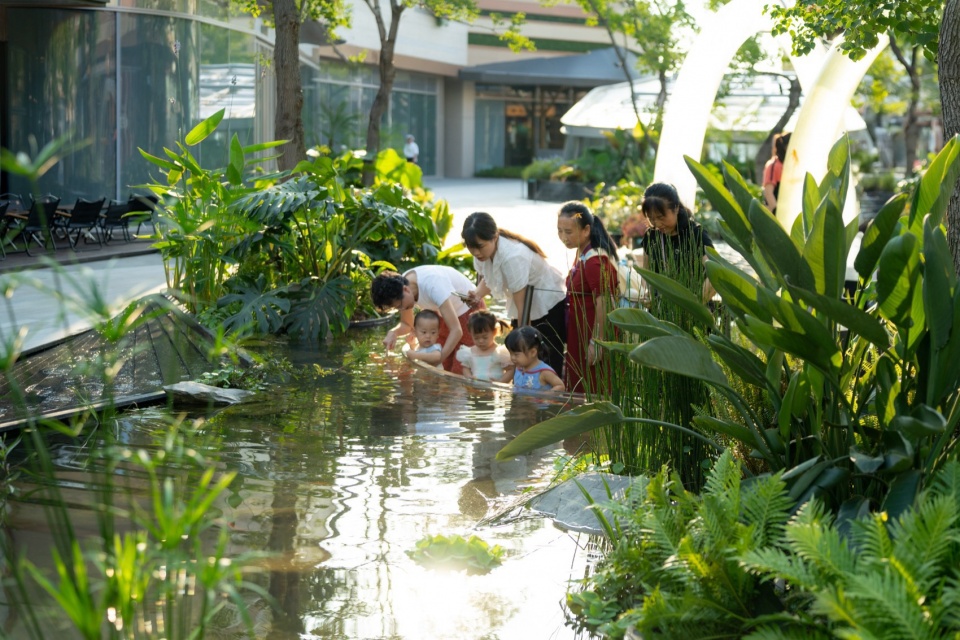 A 25-meter-high “cascading waterfall” rushes down the building facade hidden in the plants, constructing a complete three-dimensional picture of natural mountains and rivers between the urban forest and the mountainous land. If you observe carefully, you will also find the clues of the migration journey scattered in the forest. Cascading waterfalls, bars, shaped trees, migration clues and small children’s activity spaces form a unique under-forest spatial experience.