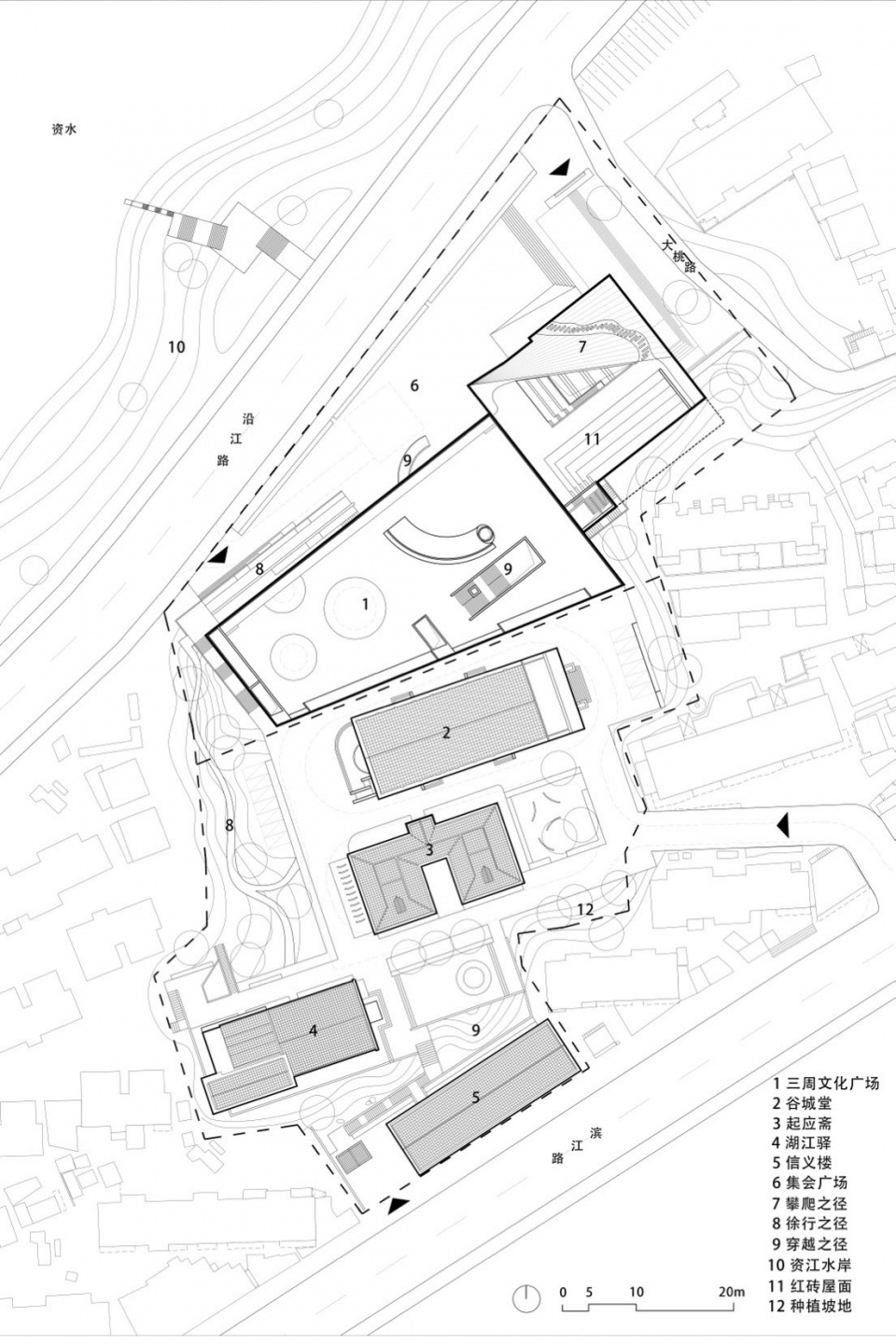 如果将建筑视为联结城市与自然的空间媒介,三周文化广场的路径系统打破对传统游走逻辑的简单重构,而是通过行走本身,编织起市民日常活动与场地历史记忆相互叠合的空间网络。