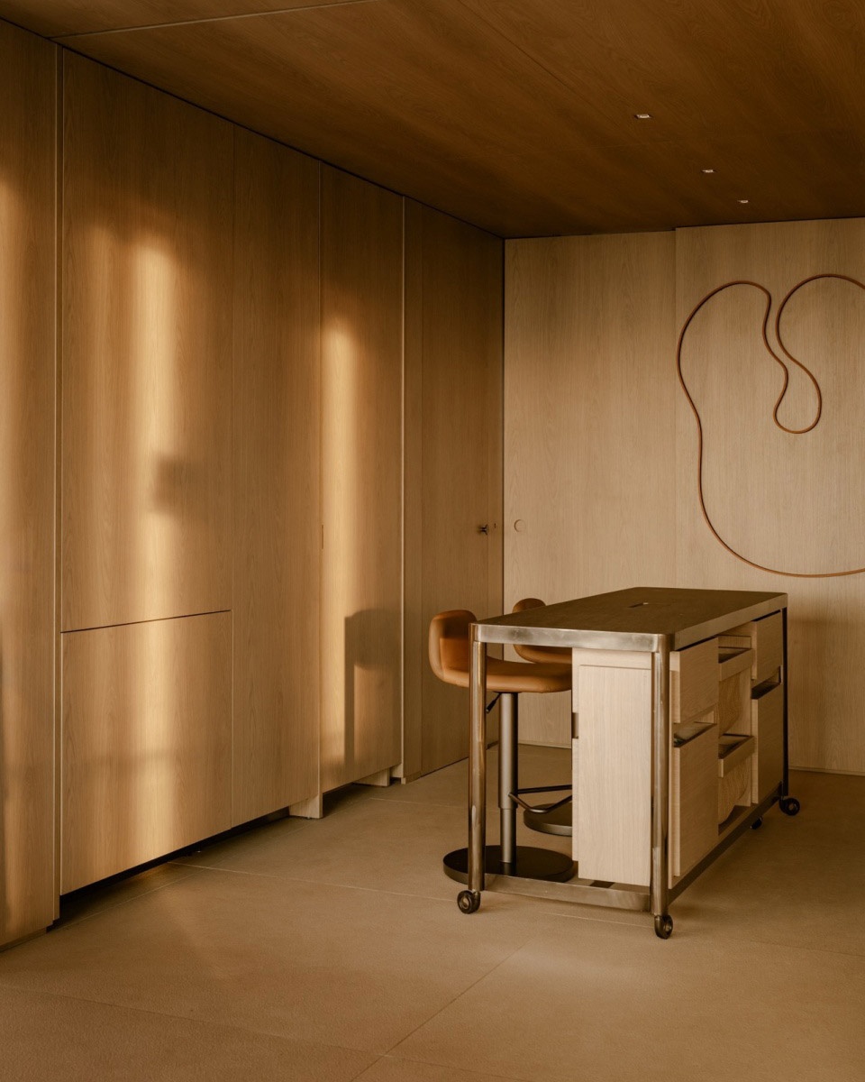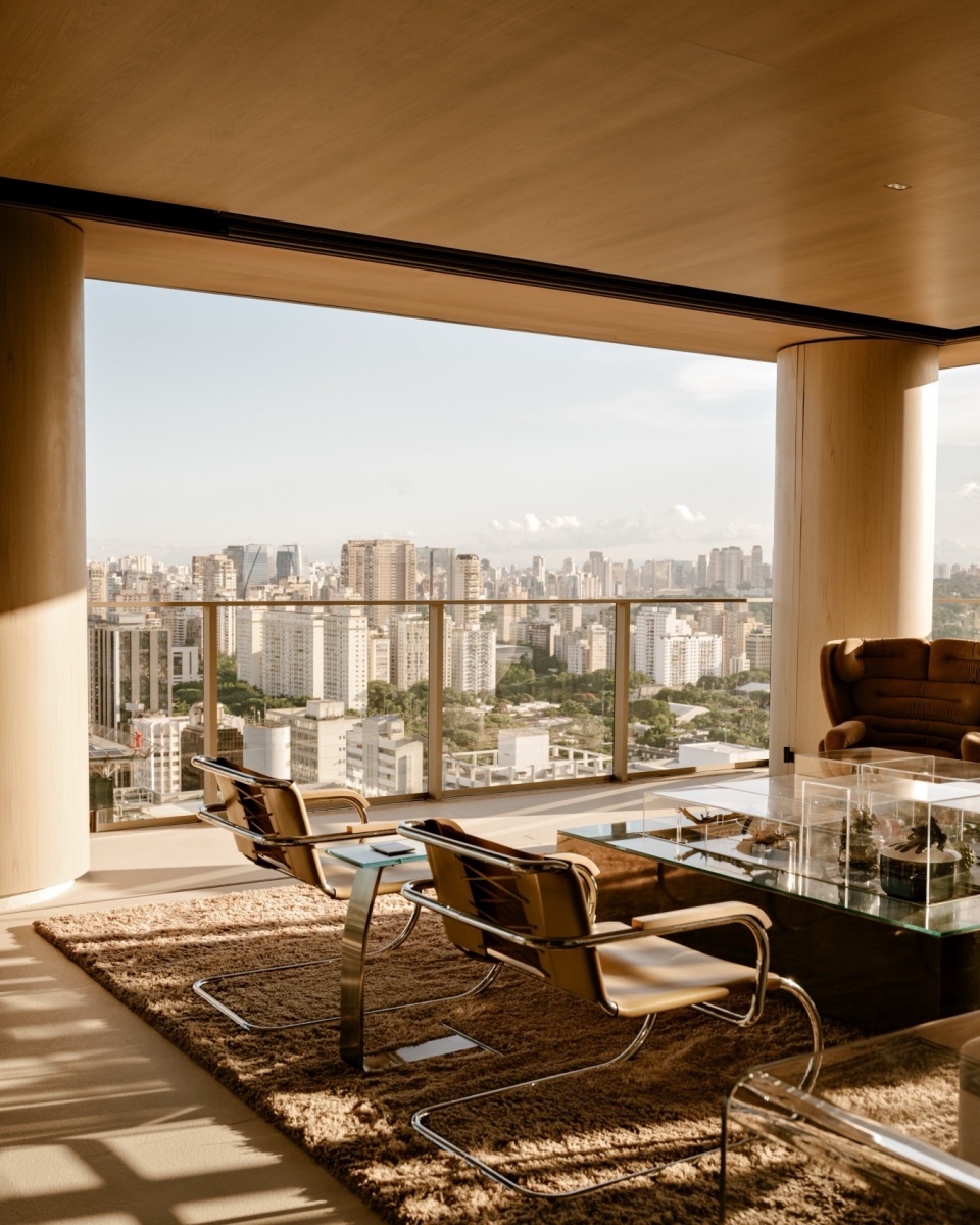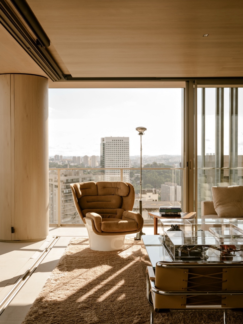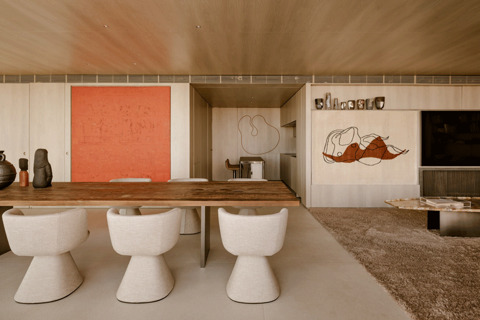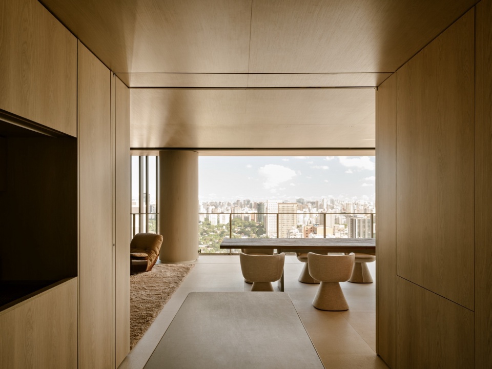 作为为自己打造的居所,Arthur Casas的这套公寓凝聚了技术精准、功能理性与个人叙事的综合表达。公寓位于Praça Henrique Monteiro综合体——这一集酒店、餐厅、面包房、爵士俱乐部与住宅于一体的项目同样由他设计——空间被构想为其建筑观、设计观与城市生活理念的直接延伸。从平面布局到木作细节,每一项决定都回应日常生活的真实需求:流畅的空间组织、整合的系统设计以及克制而明确的美学表达。在这里,Arthur Casas主动挑战自己,去实践一种真正都市化、当代且高效的生活方式——这与他此前在Pacaembu居住近35年的住宅形成鲜明对比,那是一栋由建筑师Artigas于20世纪40年代设计的独立住宅。