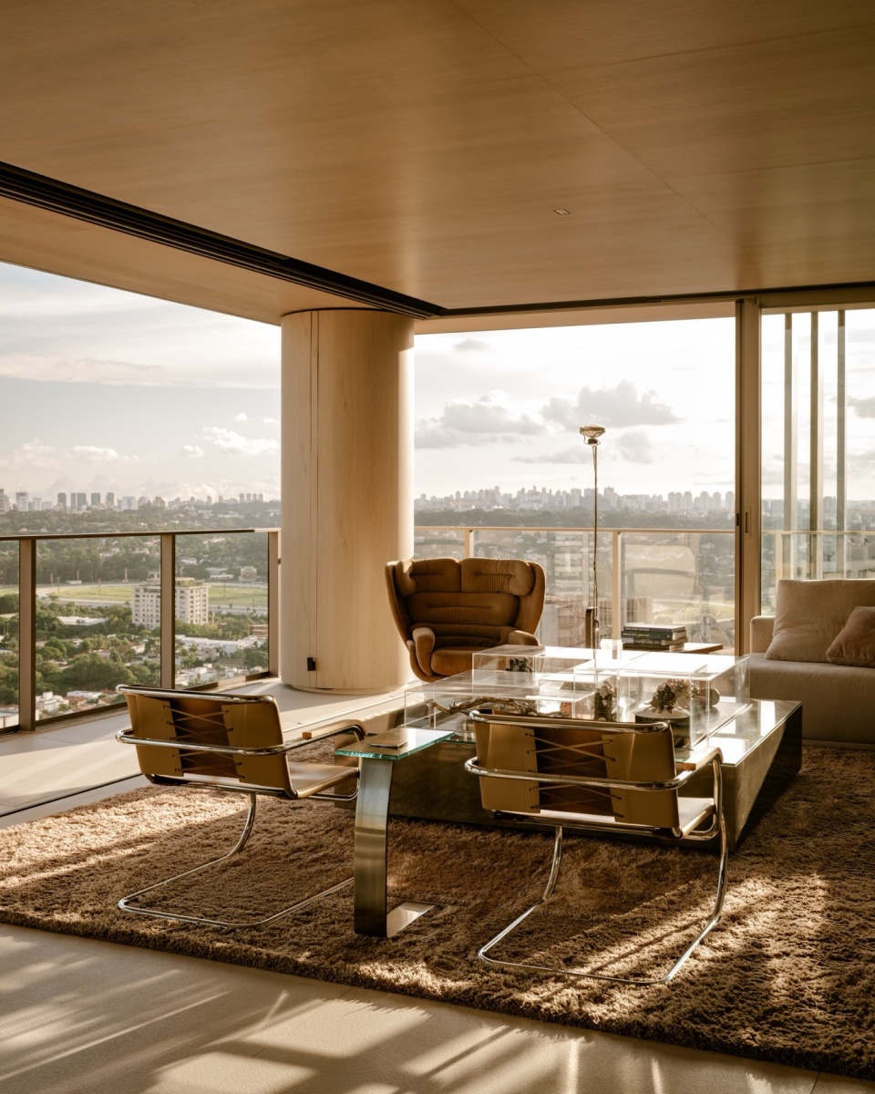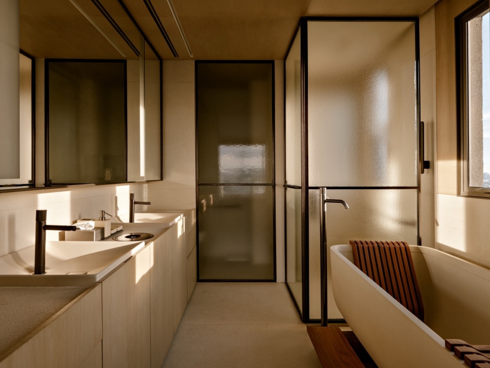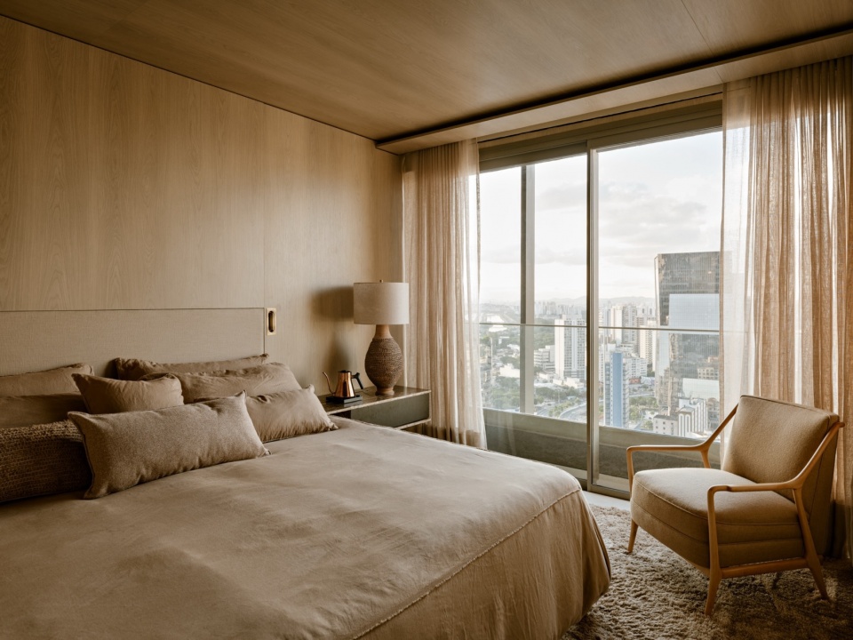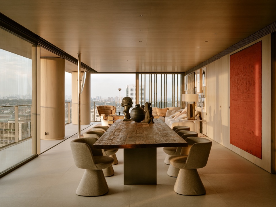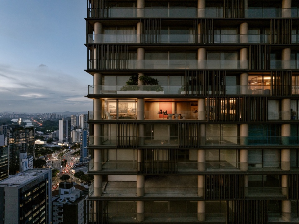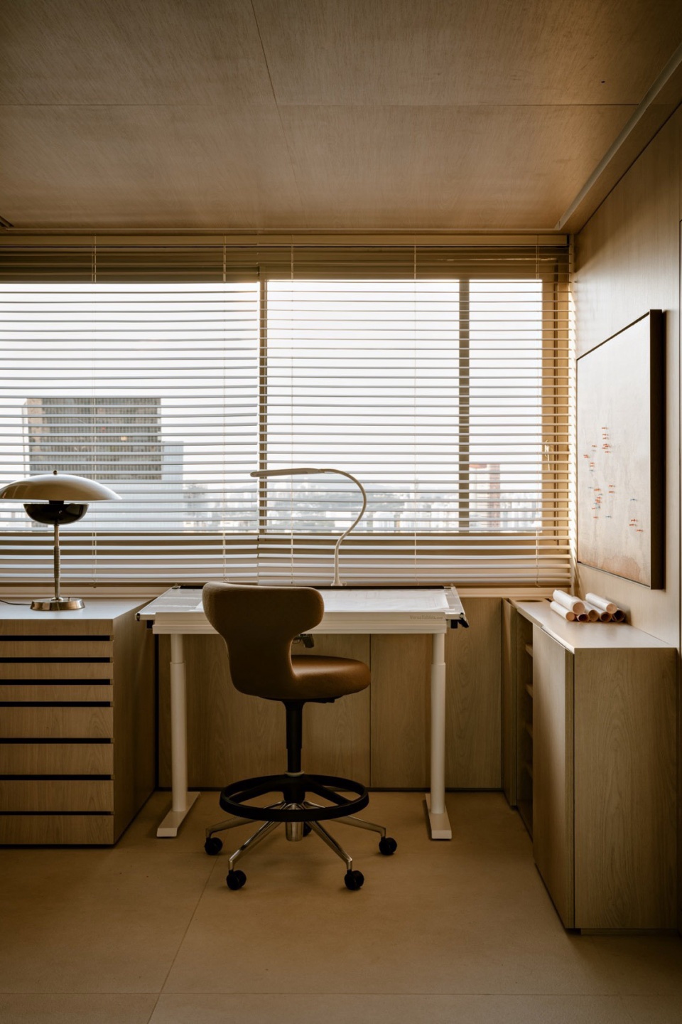 作为为自己打造的居所,Arthur Casas的这套公寓凝聚了技术精准、功能理性与个人叙事的综合表达。公寓位于Praça Henrique Monteiro综合体——这一集酒店、餐厅、面包房、爵士俱乐部与住宅于一体的项目同样由他设计——空间被构想为其建筑观、设计观与城市生活理念的直接延伸。从平面布局到木作细节,每一项决定都回应日常生活的真实需求:流畅的空间组织、整合的系统设计以及克制而明确的美学表达。在这里,Arthur Casas主动挑战自己,去实践一种真正都市化、当代且高效的生活方式——这与他此前在Pacaembu居住近35年的住宅形成鲜明对比,那是一栋由建筑师Artigas于20世纪40年代设计的独立住宅。