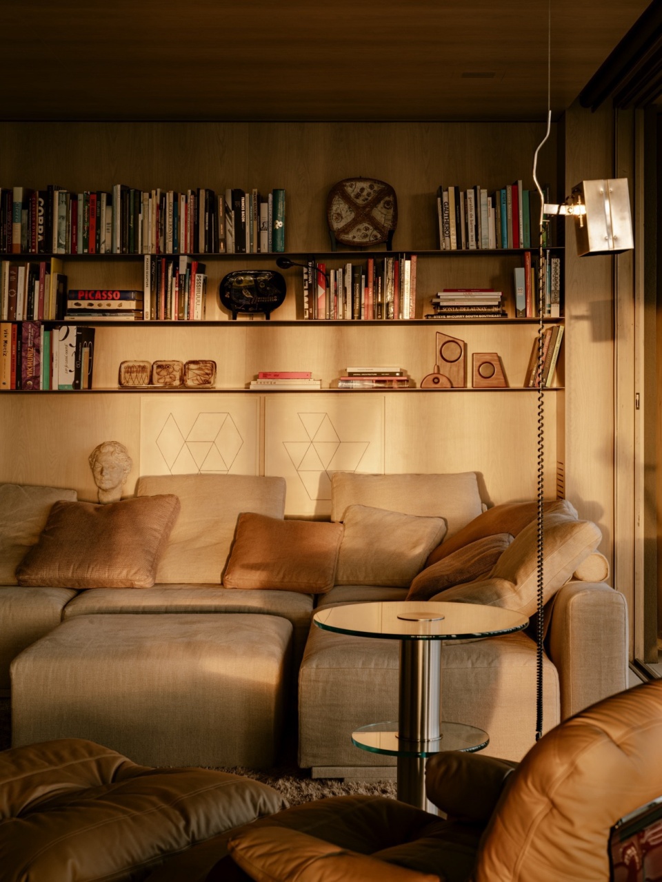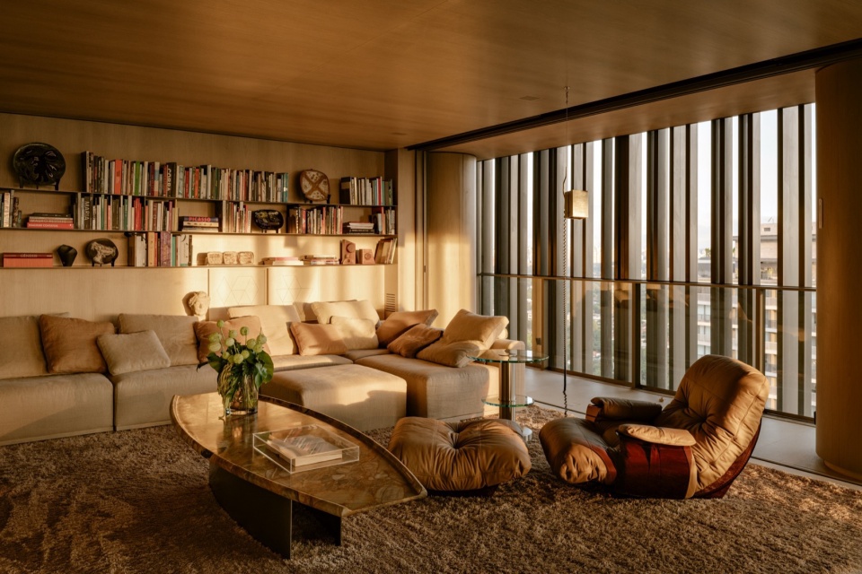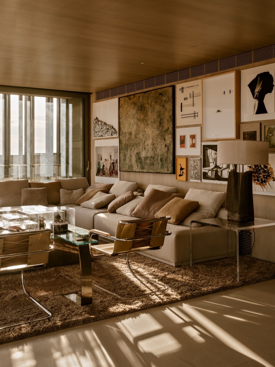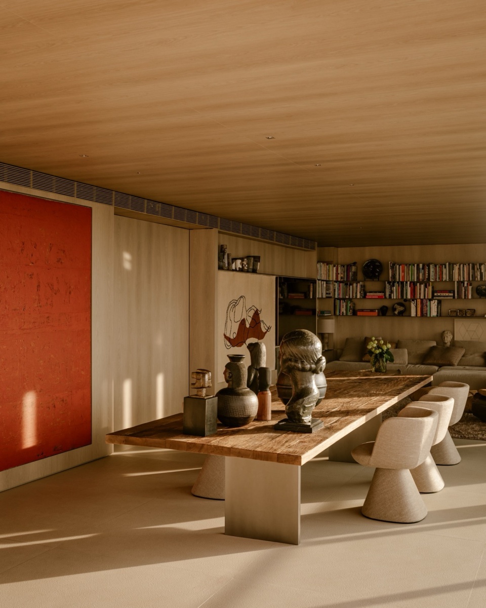 这套面积约300平方米的公寓,以消除冗余空间为前提,强调直接而高效的动线组织与多功能场景的切换。全屋自动化系统、定制化解决方案以及大量天然材质的运用,共同营造出一种精准而温润的氛围——在舒适与控制之间取得平衡,同时以视觉上的中性克制,承载他丰富的收藏:艺术品、雕塑、书籍、摄影作品、设计物件与个人珍藏。“为自己设计其实很简单。我是自己最好的客户,因为我清楚自己喜欢什么、如何生活。”Arthur Casas说道。