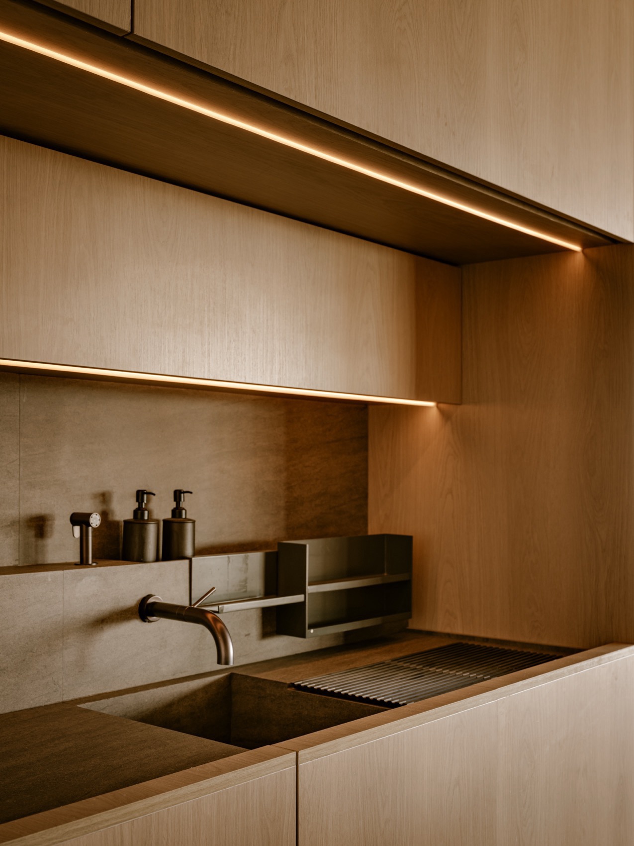 Every technical detail was meticulously integrated: central vacuum, embedded sound system, invisible air conditioning, anti-moisture system, intelligent sensors, and full automation. The lighting, featuring fixtures from XAL – known for their precise radiation and symmetrical light distribution – highlights the artwork and materials without interfering with the architecture.