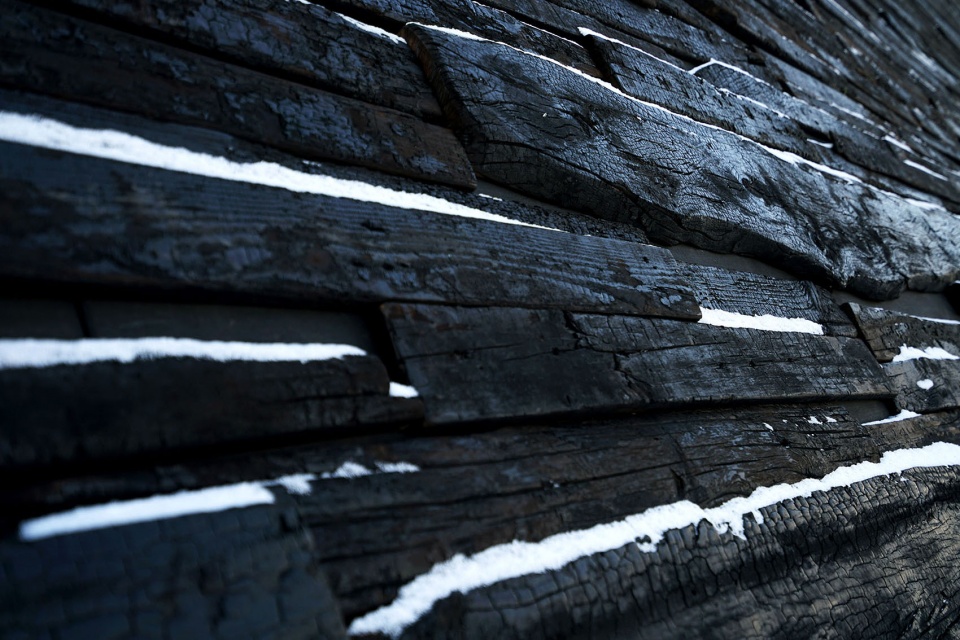 ▼碳化木表皮细部,Charred timber skin detail