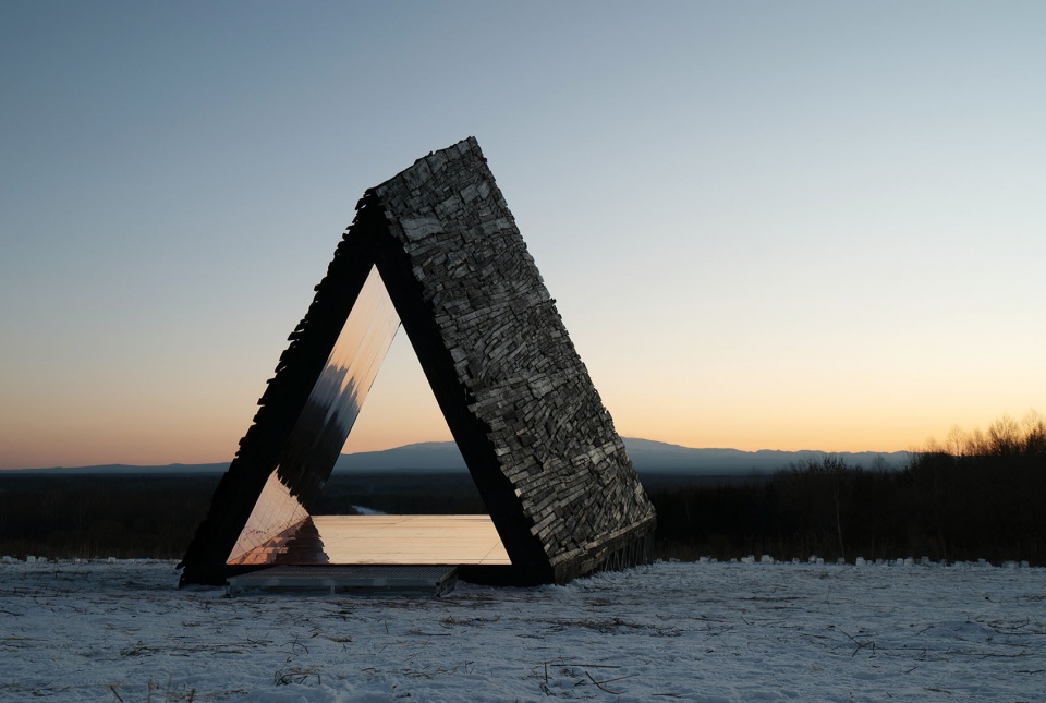 在长白山的冬季地景里,雪覆盖地表,光线收敛,低温与风让停留变得难得。远处的山体巨大而稳定,主导着视野与情绪。被安放在面向长白山的方向,“棱镜庇护所”为旅人提供一个可以放空并稍作停留的地方:抵达、进入、停留,在等待中看见时隐时现的远山。
