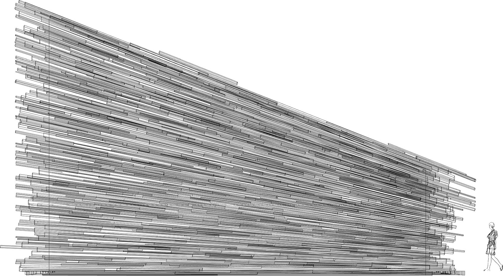 The areas around Changbai Mountain were once active timber forests. Logging has since ceased for environmental protection, yet small cabins assembled from raw lumber remain a common local typology. This work extends that direct, primal construction character, keeping pace with wind and snow, the forest sea, and the grand scale of the surrounding landscape.