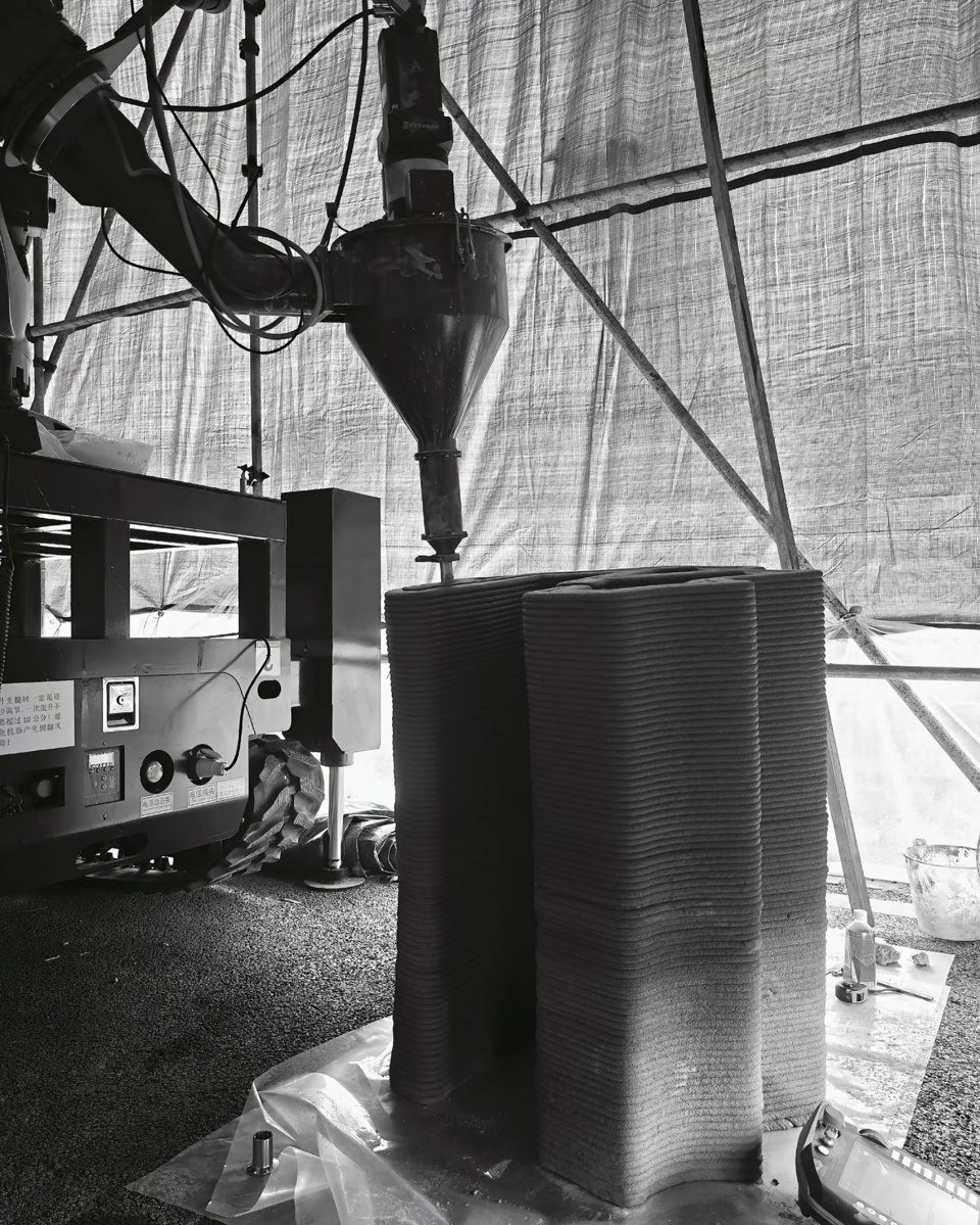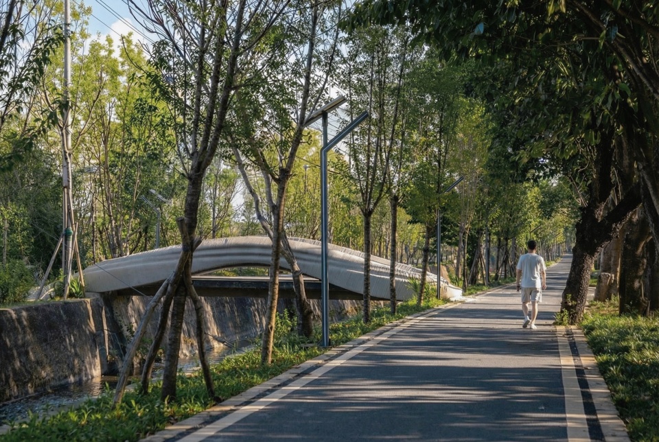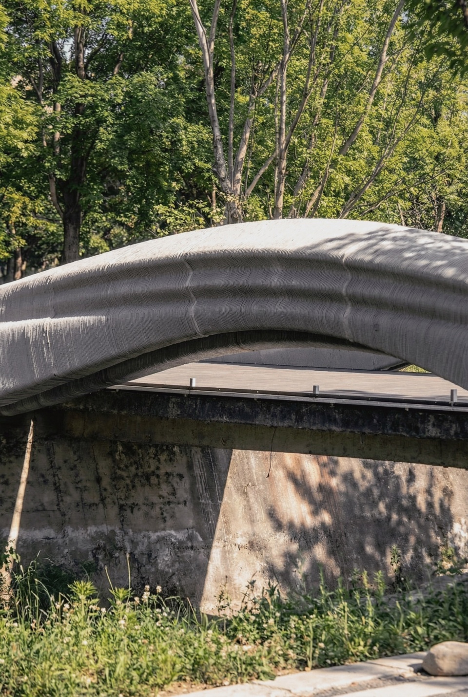 在地的、轻量化、快速的,是项目的技术主旨。1号桥在打印的混凝土中掺入了40%的固废掺合料,以邻近建筑工地的砖渣和磷石膏作为骨料纳入打印油墨,实现了资源的节省与就地循环利用。所有构件均在地打印,无湿作业与模板工程,施工周期极短。从数字模型到实体建筑,全程贯彻“所见即所得”的精准控制,确保设计意图的完整呈现与施工品质的一致性。1号桥不仅仅是一座桥,更是一个宣言、一个起点。未来,和畔皓森将继续在这条融合 “数字之智、生态之美、地域之魂” 的创新道路上深耕前行,让每一处营造,都成为对“和合之境”的生动诠释,为土地留下恰如其分、与时光共生长的当代印记。