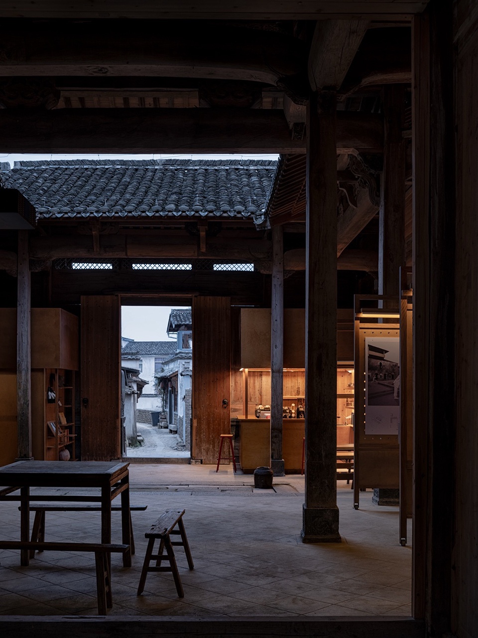 空间的生命力在于使用。“转板系统”的开合之间,空间在密集结构与历史空间两种状态中自由切换,服务于不断生长的公共生活需求。运营推动村民参与,将在地文化自然融入服务。本项目是在文物保护、村民需求与影像主题之间寻求平衡的实践,通过设计的多种可能性,与南屏的居民和访客共同打开对乡村公共文化空间的想象。