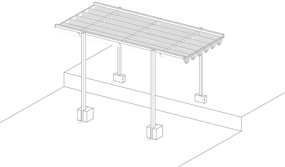 the shading system incorporates concrete counterweights