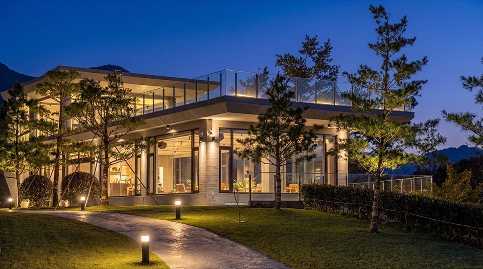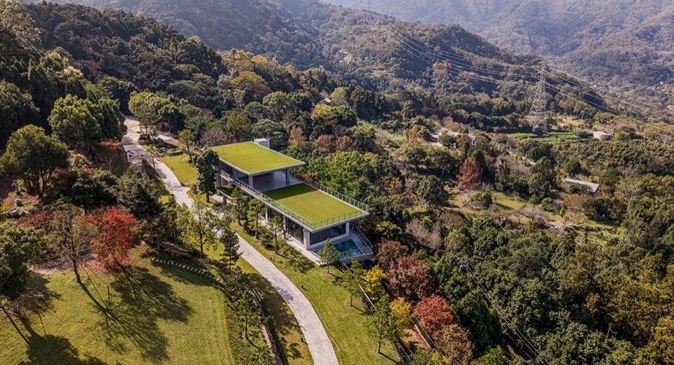 Commissioned by a successful couple preparing for retirement, the project is conceived as a secluded retreat in the mountain valleys of central Taiwan. Their intention was not to build a trophy house, but a quiet residence where everyday rituals could return to a slower rhythm—one that is measured by light, wind, mist, and the changing seasons. The site is a long and narrow hillside parcel situated between two terraces at different elevations. The upper platform offers an open clearing, while the lower terrace is embraced by dense woodland. Beyond the immediate trees, layered ridgelines unfold in the distance, with clouds and fog drifting through the valley. This duality—open plateau above and forest enclosure below—became the foundation of the spatial narrative.Rather than treating the landscape as a background view, the design sought to dismantle the boundary between architecture and nature. Here, dwelling is not defined by watching the scenery, but by becoming part of it.