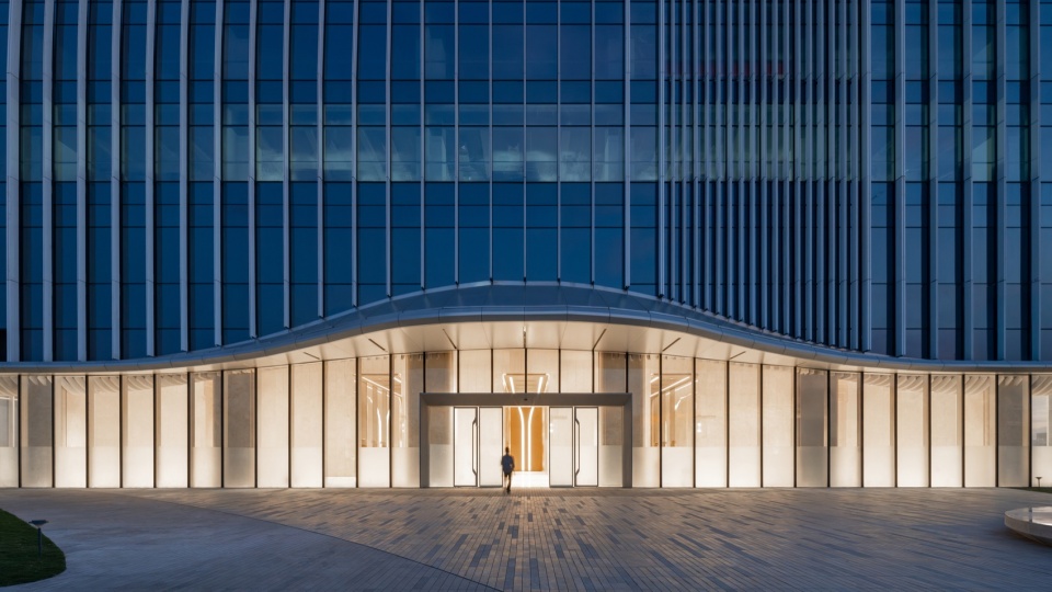 在统一的逻辑源头下,东地块两座塔楼依据其不同的公共属性,生长出姿态各异的空间形态。