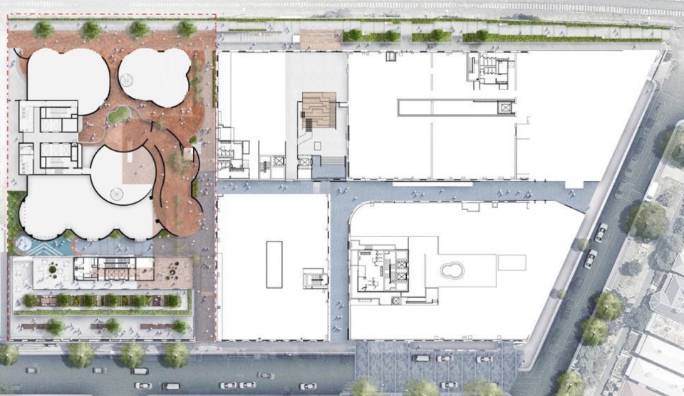 设计通过整合公共空间、行人连通体系以及支持社交互动的设施,优先强调社区层面的公共利益。多个入口经过精心组织,建立起多重连接关系,鼓励公共与私人空间的协作。设计的核心在于引入一处位于街区中心的“城镇广场”,其设有采光充足的阶梯式座席,成为人们相聚、分享、社交与交流的场所。城镇广场进一步连接至被重新激活的铁路廊道,一条景观化的步行与自行车共享通道。