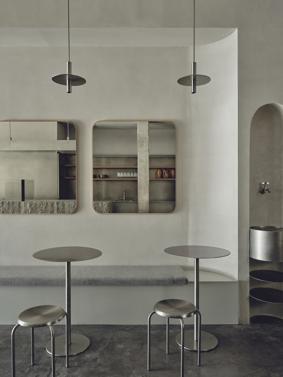 To further enhance the identity of the space, custom furniture and lighting were designed. Stainless steel was chosen as the main material, symbolizing resilience and cleanliness.