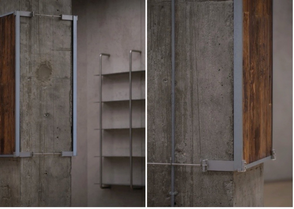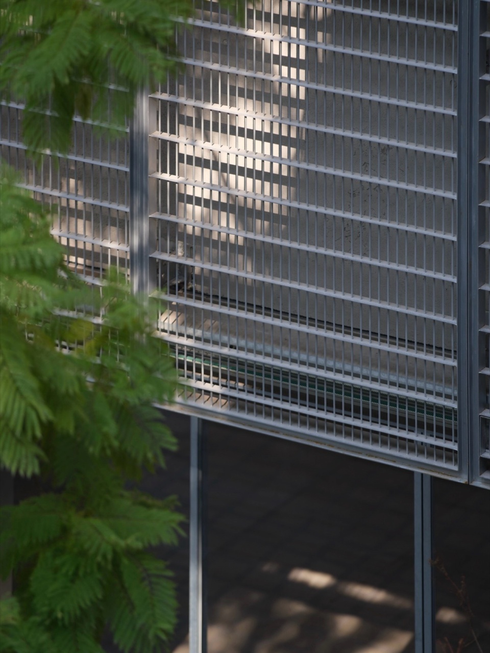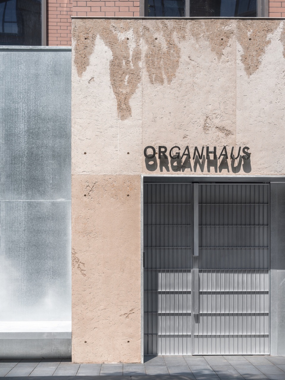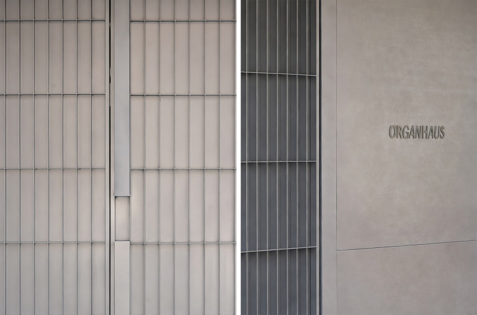 We cloaked the building in a pioneering metal curtain—a bounded veil that opens a dialogue with its surroundings. At the entrance, a sliding metal door alternates between transparency and solidity, allowing nature to permeate the threshold. On the opposite side, the custom‑made metal gate for Organhaus follows a gridded, mechanical logic—a foldable entrance that continues Organhaus’s spirit of artistic experimentation, resembling a hangar door embedded in the mountain city, open to artists and creators.