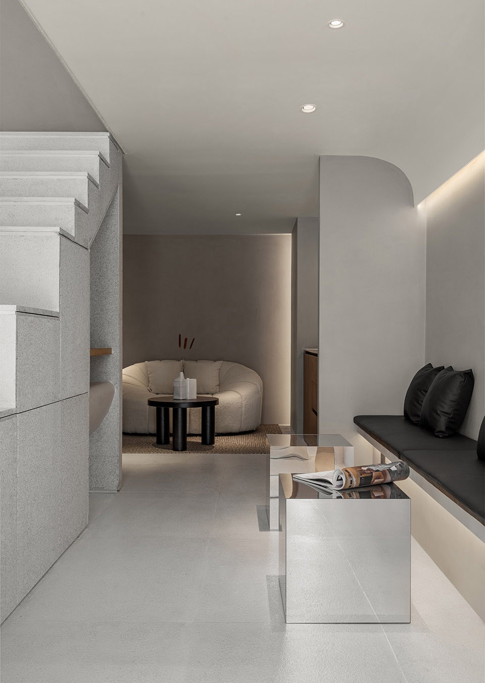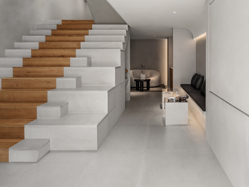 We want to make a space, a temperament or a state, can connect the space itself with the owner of the space. The whole space is based on light color to express a kind of empty space. I can regard any empty space as an empty stage. Everyone has a desire to perform, and a good space should allow people to become dancers as well as spectators. You’re there to present, and you’re watching other people present. The gray of the large surface is presented by the concrete texture, which ensures the purity of the overall tone while being full of details. The combination of the purity of the color and the purity of the geometric form completely removes the mundane complexities, allowing people to slow down the rhythm and calm their hearts.