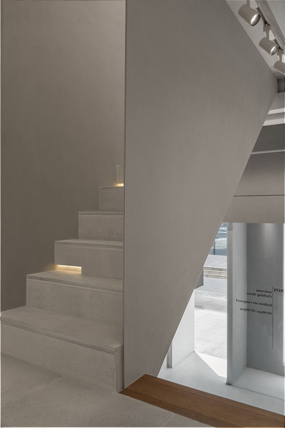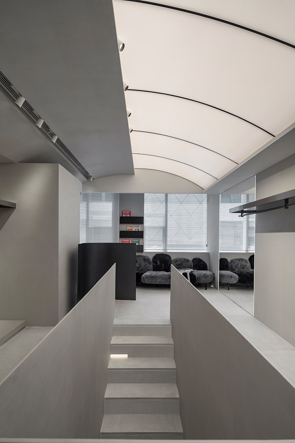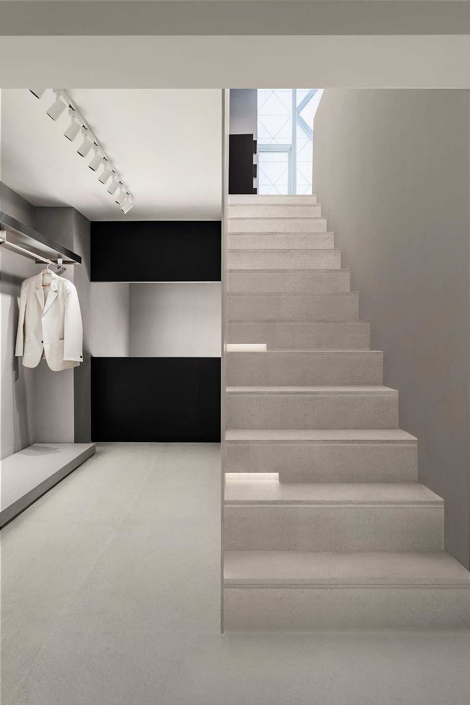 ▼由楼梯看向隐藏在角落的试衣间,viewing the fitting room in the corner from the staircase