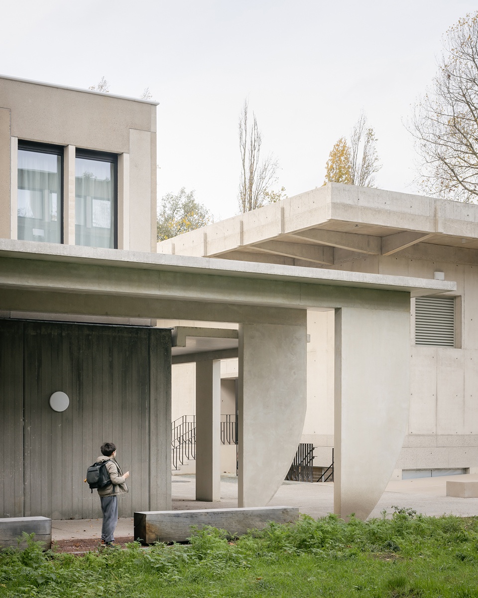新的混凝土立面构件以一种节奏化的方式排列,与原有建筑的韵律相呼应。细长的板件依据构造逻辑进行弯曲,体现出新建阶段的结构表达。设计对建筑原有的包容性与宽敞空间抱以充分而激进的信任,并将其延展为一个新的整体组合。