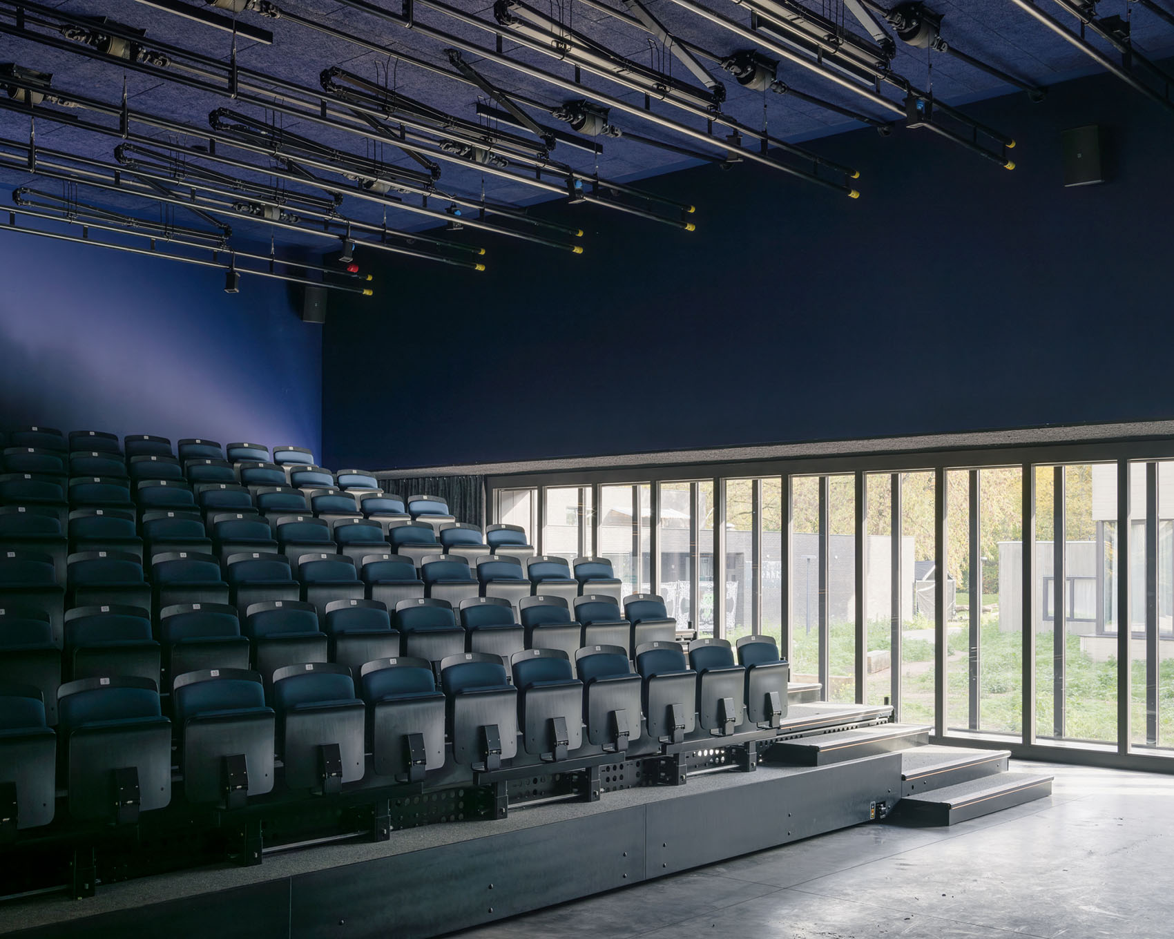 20世纪70年代的混凝土建筑常被视为灰暗、沉闷的结构,人们往往希望尽快将其拆除。以木材、钢材与玻璃构成的轻质加建部分,往往进一步强化了这种负面印象。Felix设计成了一个多功能建筑群,服务对象包括学生、艺术学院使用者、图书馆、警察部门以及市政行政机构,有意识地选择“在混凝土的历史之上继续建造”。混凝土并未被“清理修饰”,而是接纳其风化的痕迹。通过将混凝土的多种色调、多样的表面处理方式以及结构所呈现的多种形态视为一套丰富的设计工具,我们得以扭转其负面认知。对混凝土柱、立面板与梁构件的多种变体进行了审慎的增补。新旧元素之间的关联清晰可辨。新的构件在呼应原有结构节奏的同时,引入更为柔和的边缘与线条。建筑在原有基础上被加高与延展,仿佛原始设计得以继续发展。一座拥有承重混凝土立面的新剧场大厅被无缝嵌入场地之中。