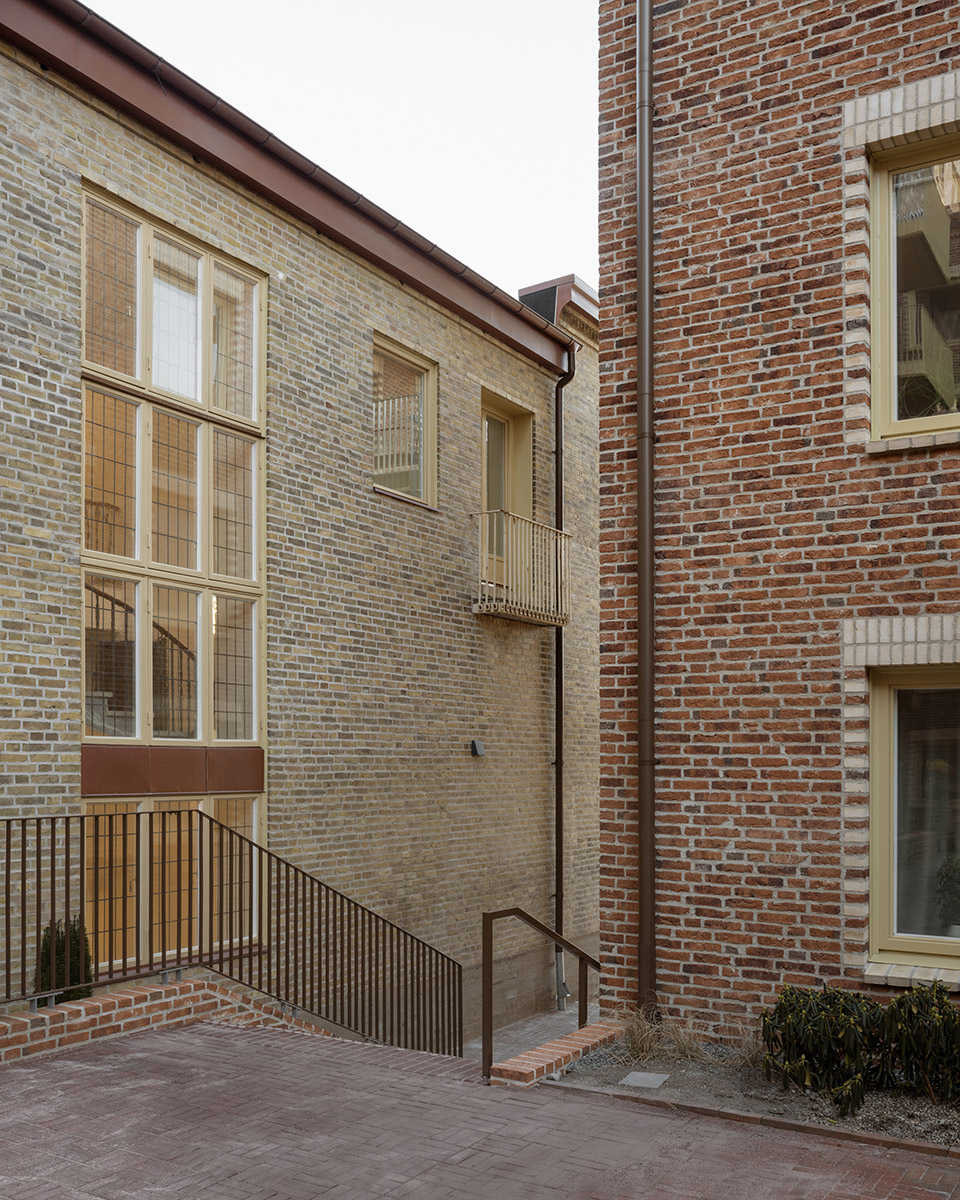 再利用理念贯穿整个改造过程。原有砖材经过细致检测后重新使用,在降低碳足迹的同时保留了建筑的历史风貌。在被保留的建筑部分,所有砖块均被小心拆除、检测并重新利用,以满足可持续性要求。其他元素如橡木门、木质构件、石灰石地面及铁艺构件也均得到修复,营造出真实而富有质感的居住环境。