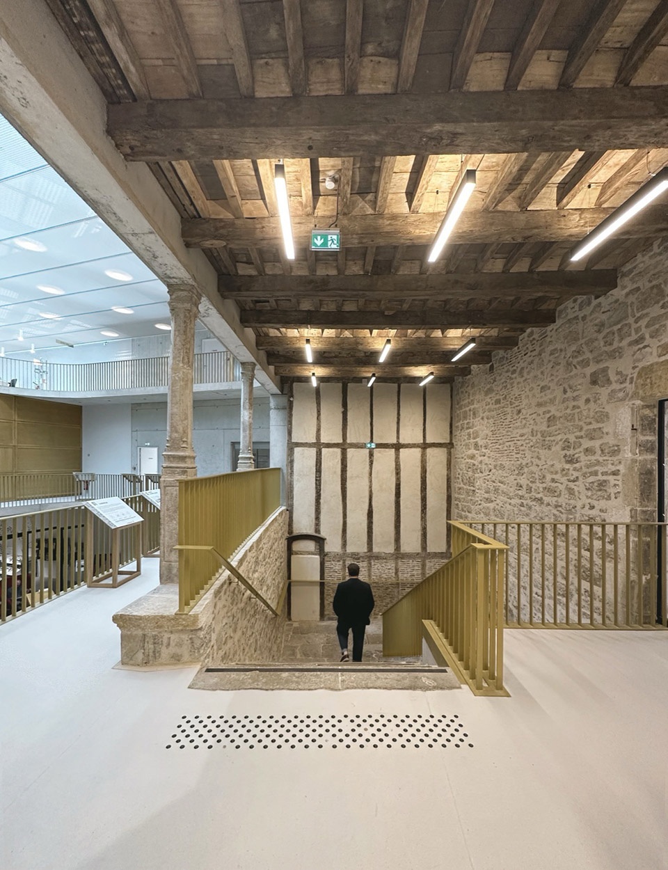 As we search and sort through the various layers of architecture that make up this complex, we realize that they follow one another, interweaving and interlocking. Like a palimpsest, an ancient author’s manuscript that medieval copyists erased to cover with a second text, the building has in a way rewritten itself over time. Our intervention is part of this process. While we are fully aware of the heritage value of this building and the responsibility entrusted to us, we nevertheless believe that the creation of this cultural hub should not be crushed under the weight of history, but rather embrace this past, present and future history in a dynamic that is both creative and innovative. Consequently, our project seeks to restore, add, juxtapose and add new components to the old parts, with the stated aim of rewriting this space in a manner consistent with today’s values and needs. Our approach is not aimed at a simple “pastiche restoration”, but rather at a harmonious dialogue between eras. We like to imagine the metaphysical dimension that emerges from the dizzying, yet tangible, gap between two fragments of reality confronting each other a few meters apart in space, and a few millennia apart in time.