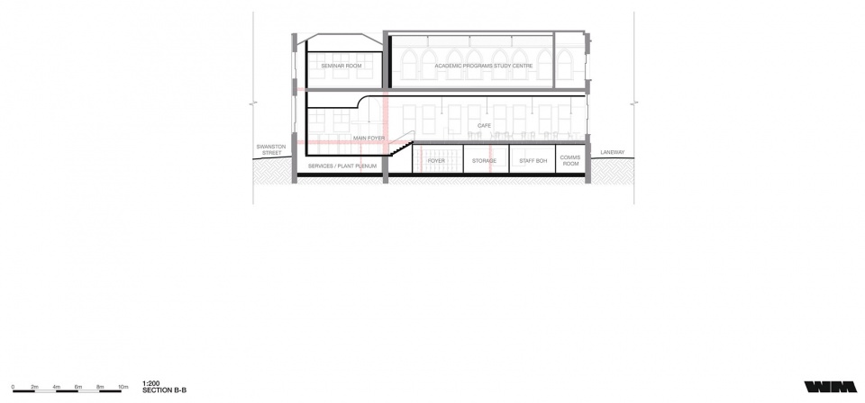 项目涵盖包括地下室在内的四层空间,与荣获维多利亚建筑奖章的画廊无缝衔接。它在优化画廊、教学和接待空间的同时,将博物馆主入口重新规划至马森路,强化了其在校园内的公共形象与文化存在感。