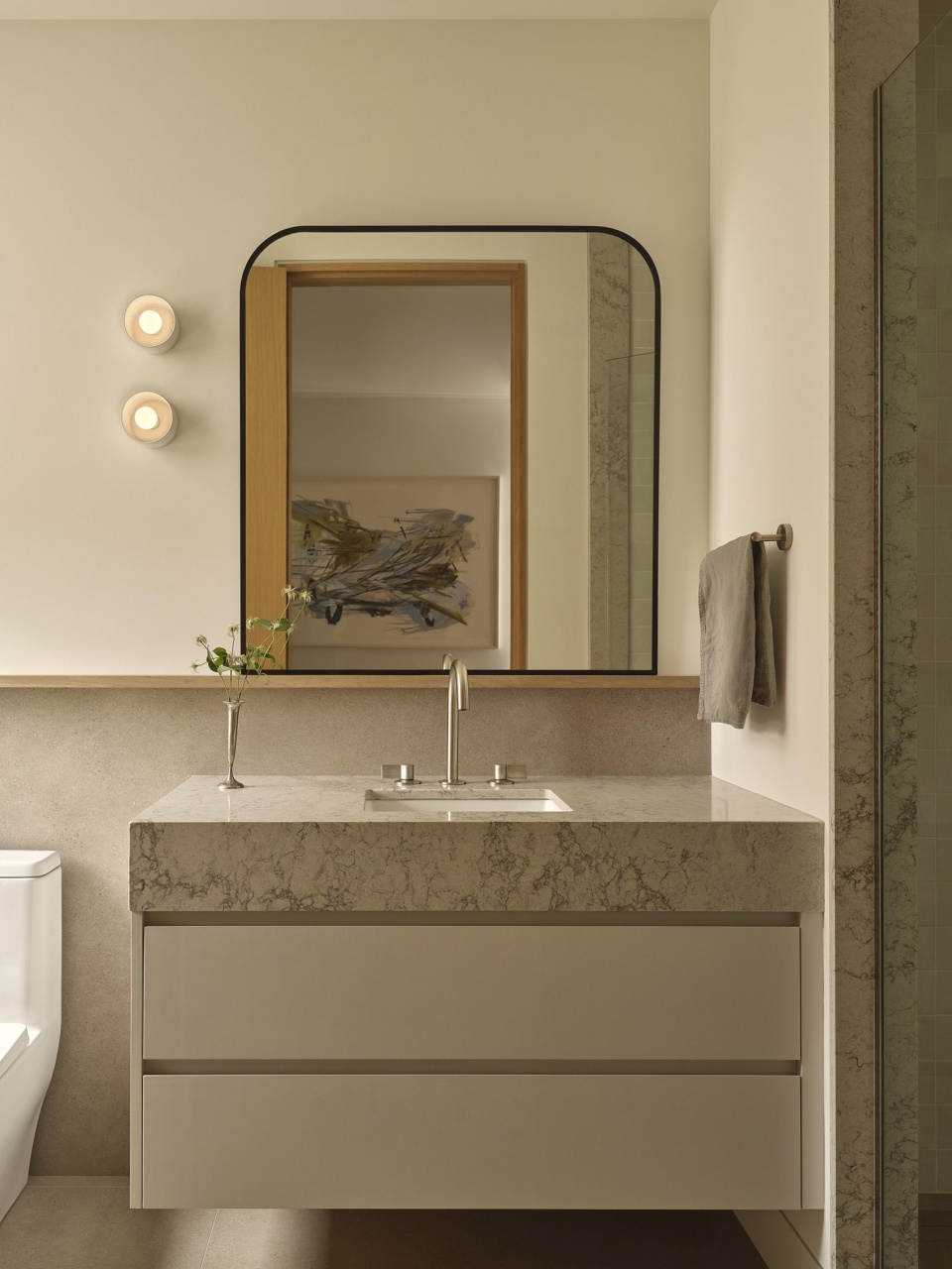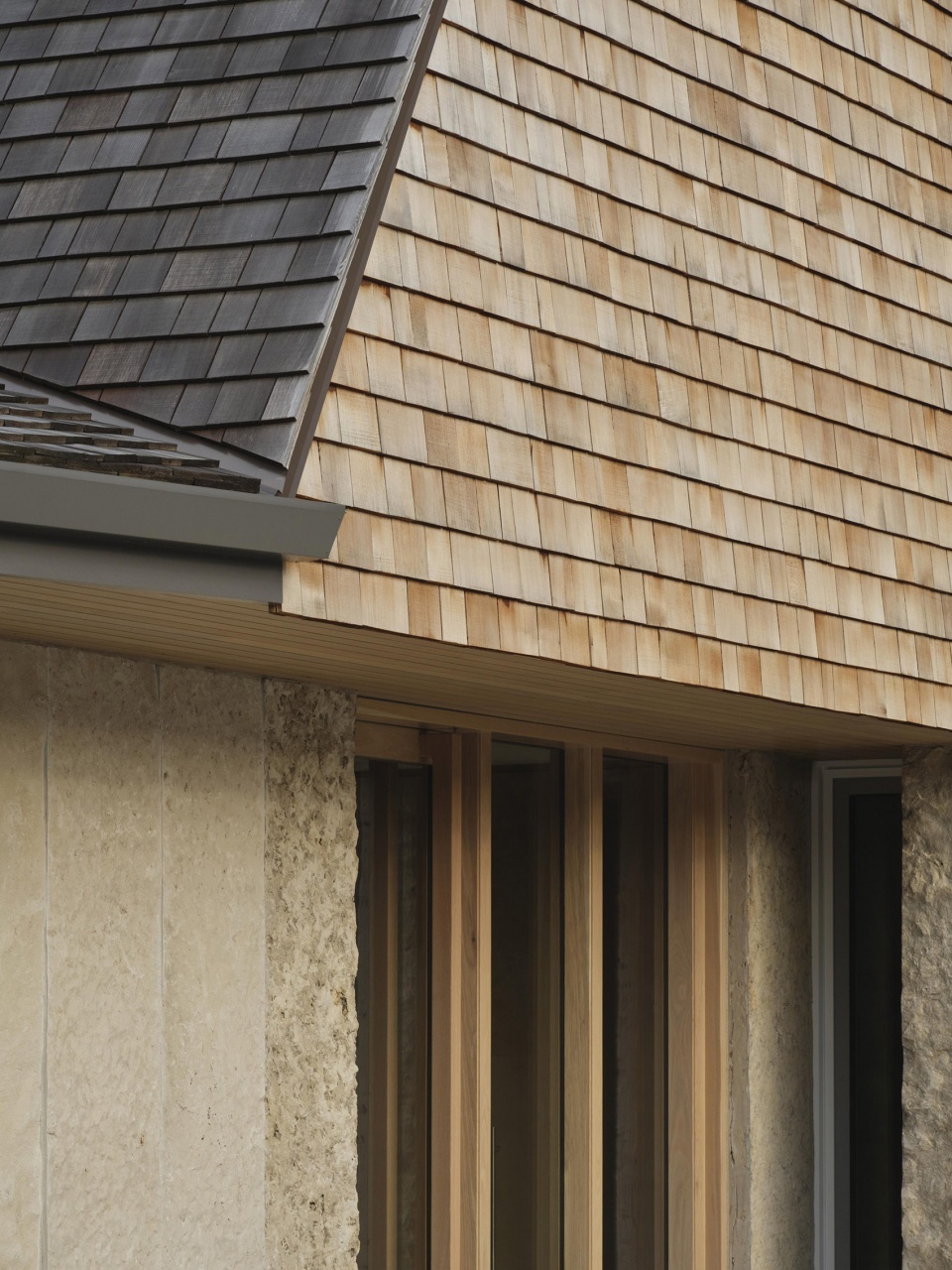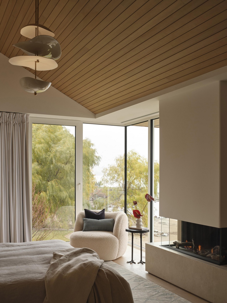 住宅坐落于湖岸线旁,设计直接回应周围自然环境。受沙滩、水体与天然石材启发,建筑延续了与场地之间的在地性关联,同时引入更为清晰、精致且克制的材料表达。建筑与室内设计协同推进,构建出室内外无缝衔接的空间对话。大面积玻璃窗框取乔治亚湾的景观视野,使自然光在一日之间塑造空间氛围。